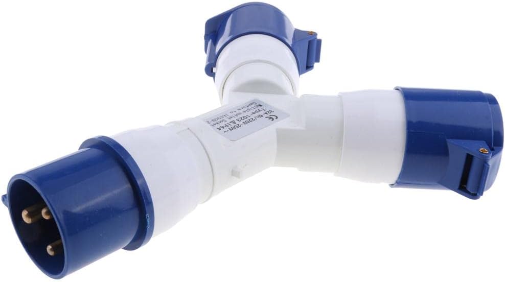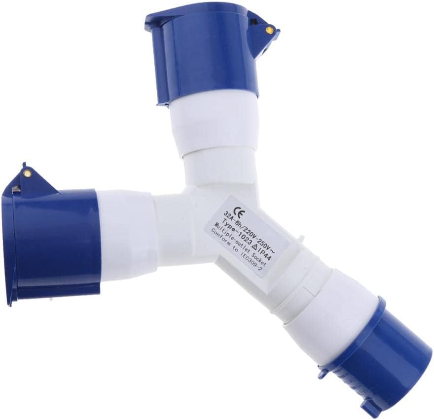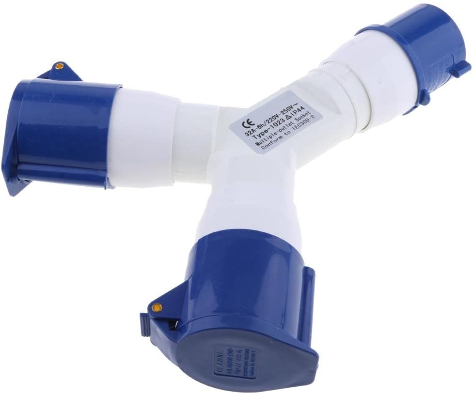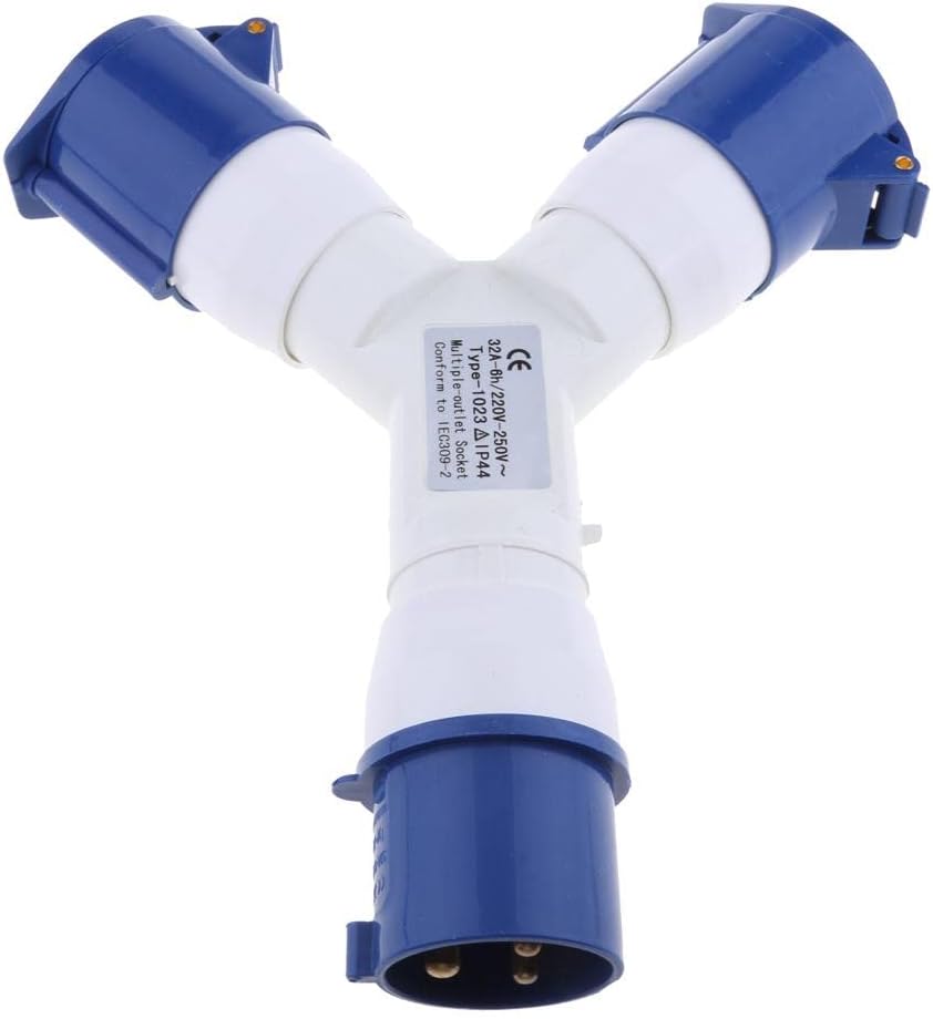 Description: - Suitable for caravans, work shop camping, motor homes, power tools, outside lighting,compressor etc. - Waterproof,dustproof and dampproof,corrosion and aging resistant, flame retardant high temperature resistant,current soft process,reliable quality. - Industrial socket, Rated Current: 32A; Rated Voltage: 220V-250V - Degree of Protection: IP44 (/ weather proof) - male, 2 female.Specification: - Material: Copper + Nylon - Color: Blue - Size: approx. 28.7 x 25.7 x 6cm - 2P+E: Fire line + zero line + ground wirePackage Includes:1 Piece Industrial Plug Socket