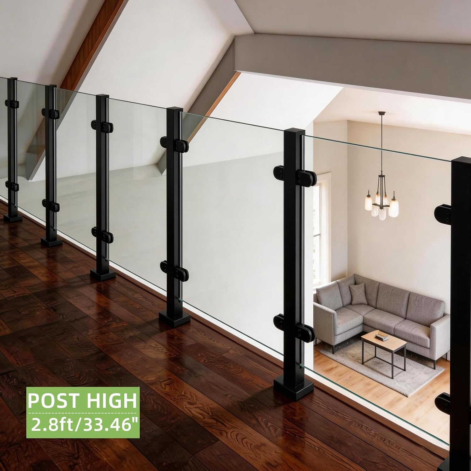 Our railings are made of high quality 304 stainless steel,covered by high temperature baking paint process, with good anti-corrosion and anti-rust ability,frosted black appearance, fashionable and beautifulMaterial: 304 stainless steelColor:BlackStyle:ModernDiameter: 2 x 2 inchHeight: 33.46 inchGlass channel width: 0.5 x 0.5 inch(Applicable glass/wood/plastics thickness:0.32-0.47in)Tube wall thickness: 0.047 inchBase thickness: 0.16 inchBase size: 3.9 x 3.9 inchProcess: High temperature baking paint