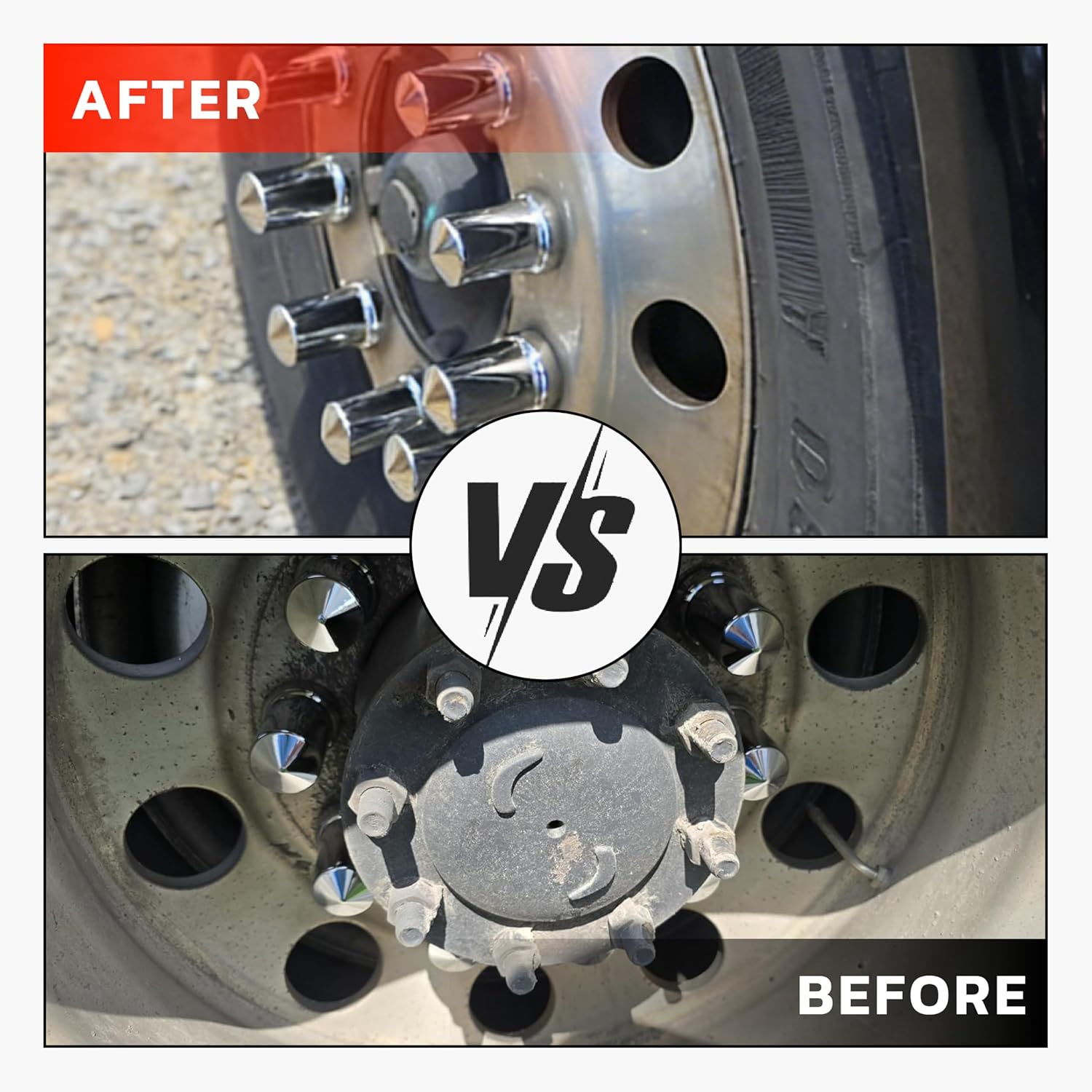33MM Chrome ABS Plastic with Flange Push on Pointed Lug Nut Covers Caps for Semi Truck Wheels Hubcap Accessories Fitment:33mm 3 3/16" Pointed Lug Nut Covers Caps for Semi Truck Wheels Material: Made of high quality ABS Plastic, protect lug nuts not be affected by natural elements prevent rust and corrosion, extremely durability