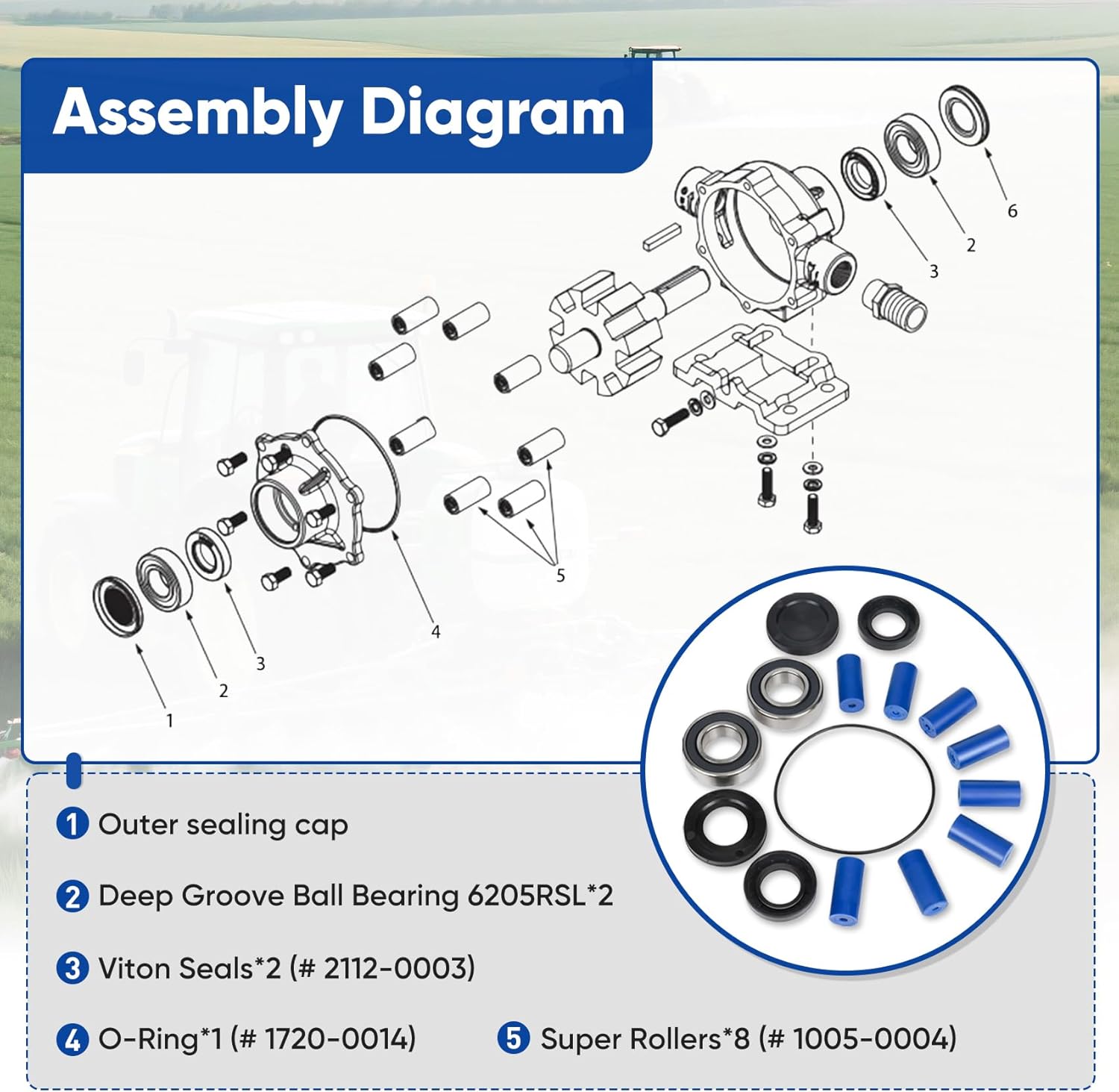 3430-0381 Super Roller Repair Kit for Hypro 7560 Series 8-Roller Pump, Includes 8 Super Rollers, 1 O-Ring Gasket and 2 Viton Seals, 12 Ounce