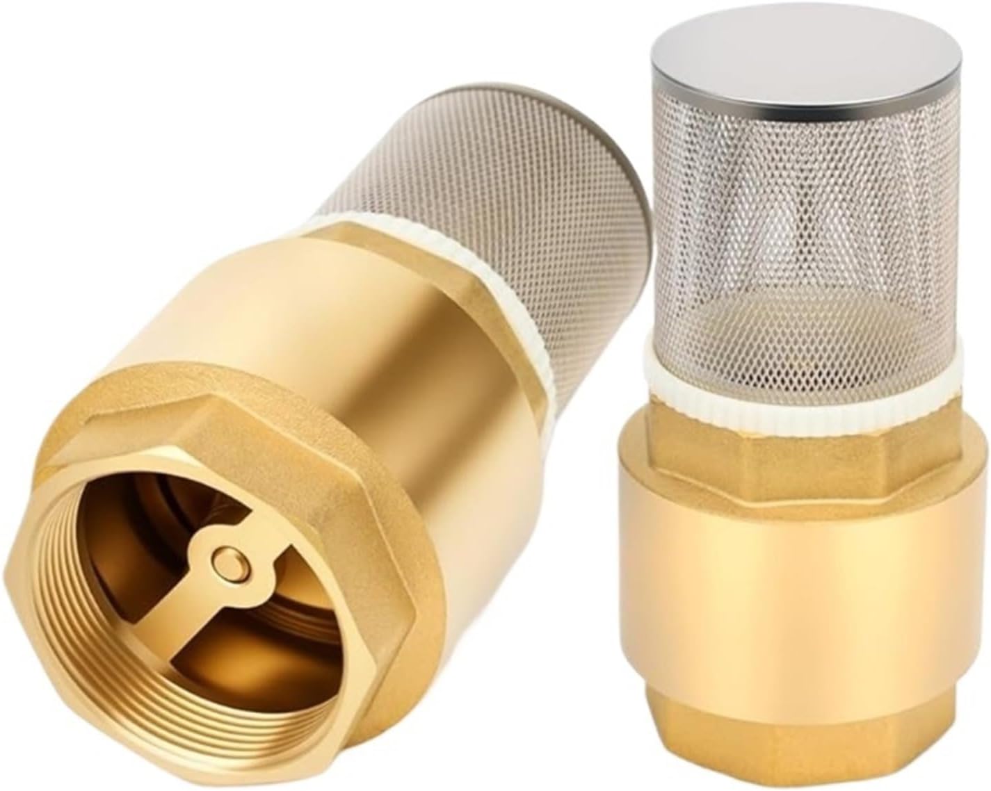 Air Pump Check ValvesSpecifications:Material: BrassSize: about 10.1x5.7cm/3.98x2.24inchTemperature resistance: -20~150 Pressure resistance: 1.6MpaInternal thread: 3/4inchPackage Includes:1Pcs Brass Check valves with Strainer