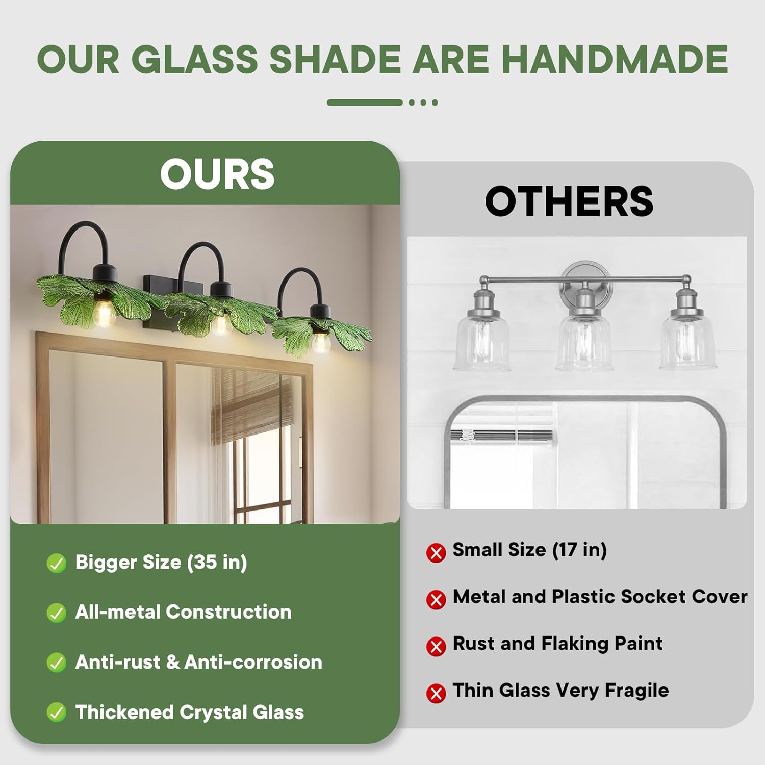 | Other Special Features of the Product | All-metal Construction, Anti-rust and Anti-corrosion, Bigger Size, Handcrafted Crystal Glass |