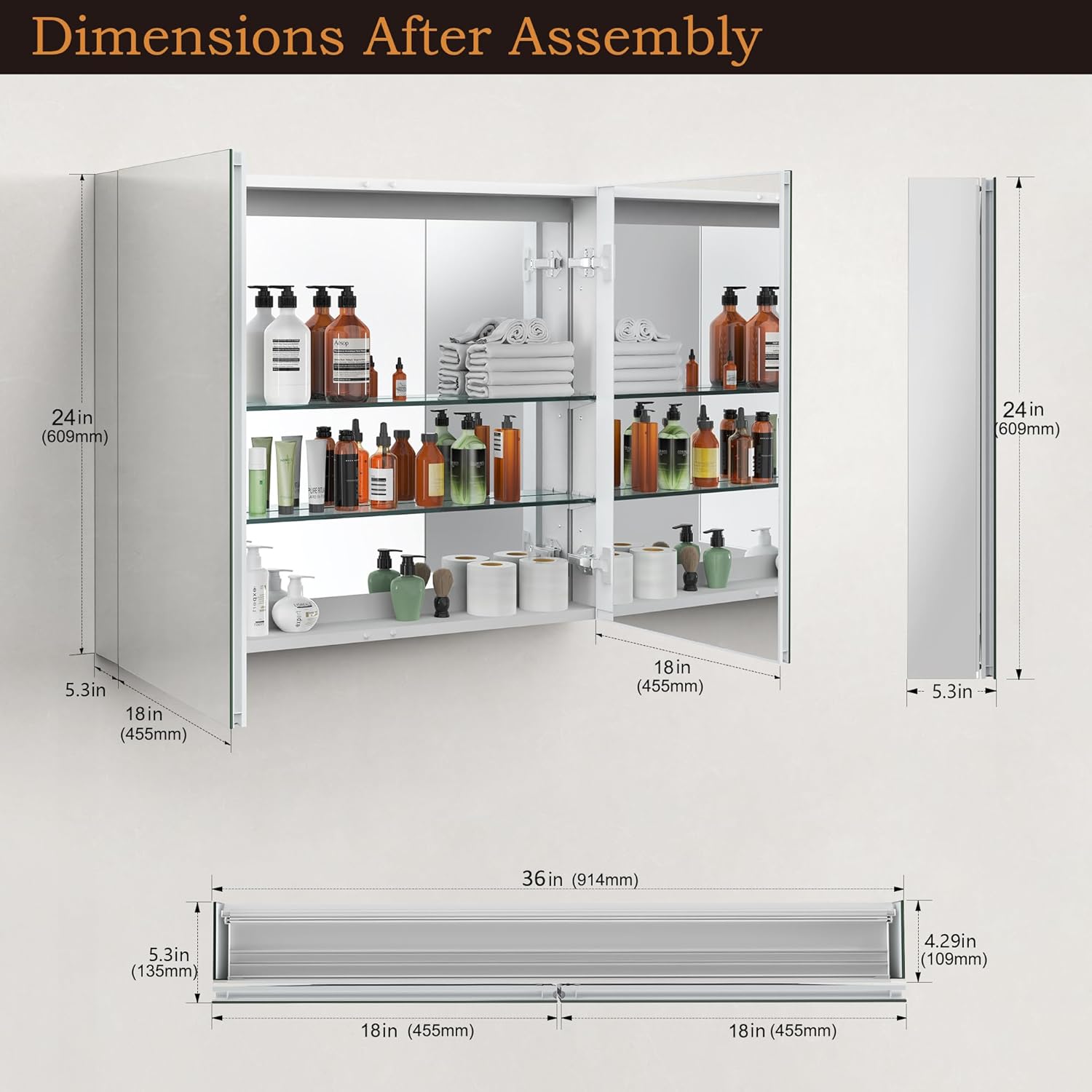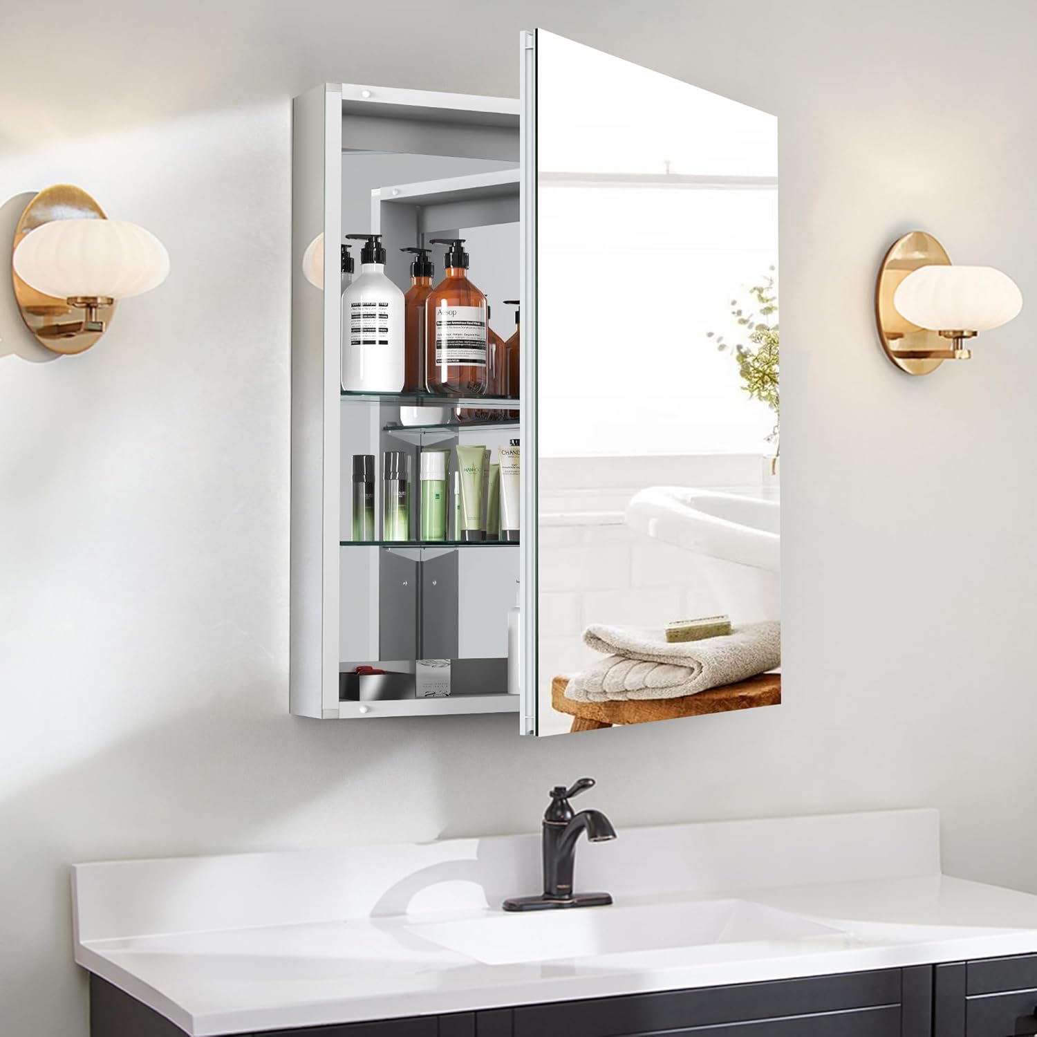 | Additional Features | Adjustable Shelf, Tempered Glass Mirror |