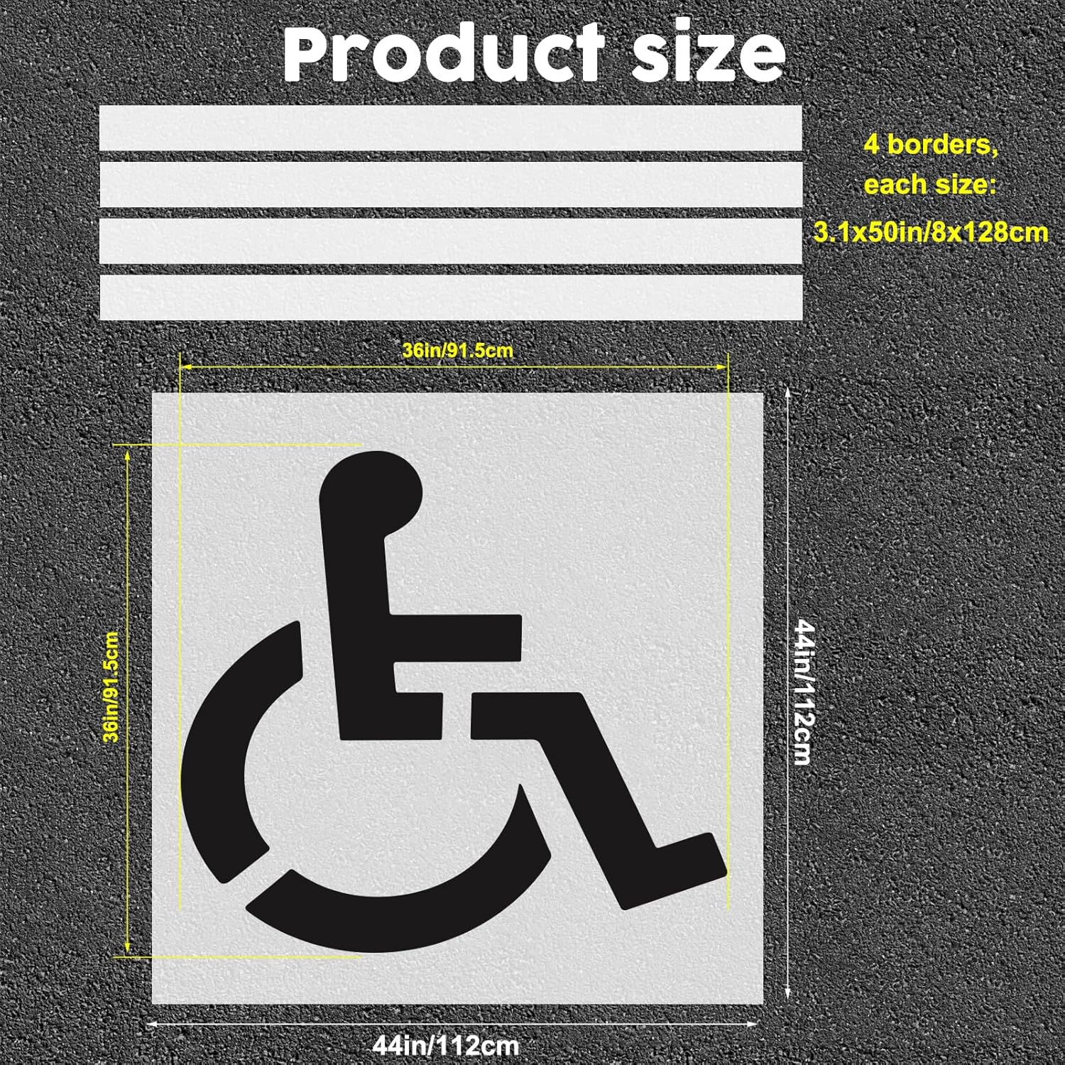 Features:Design: This disabled person stencil features a square design with a hollow center displaying the disabled symbol. The design is both practical and aesthetically pleasing, making the painting process more convenient and efficient.Specification:Material: Food-grade siliconeColor: White translucentSize:Exterior Dimensions: 40 x 40 inches (112 x 112 cm)Interior Dimensions: 36 x 36 inches (91.5 x 91.5 cm)Thickness: 1 mmBorder Strips: 4 pieces, each 8 x 128 cm, can be assembled into a square frame for spraying the background paintPackage Includes:1 white translucent handicap parking stencil4 long border stripsNotes:Manual measurement, please allow slight errors on size.The color may exist a slight difference due to different screen displays.