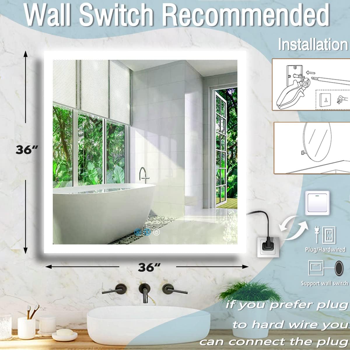 | Included Components | A Mirror with 70-in Wire Plug(Start from the middle of mirror back ), Accessory bag, Instruction Manual |