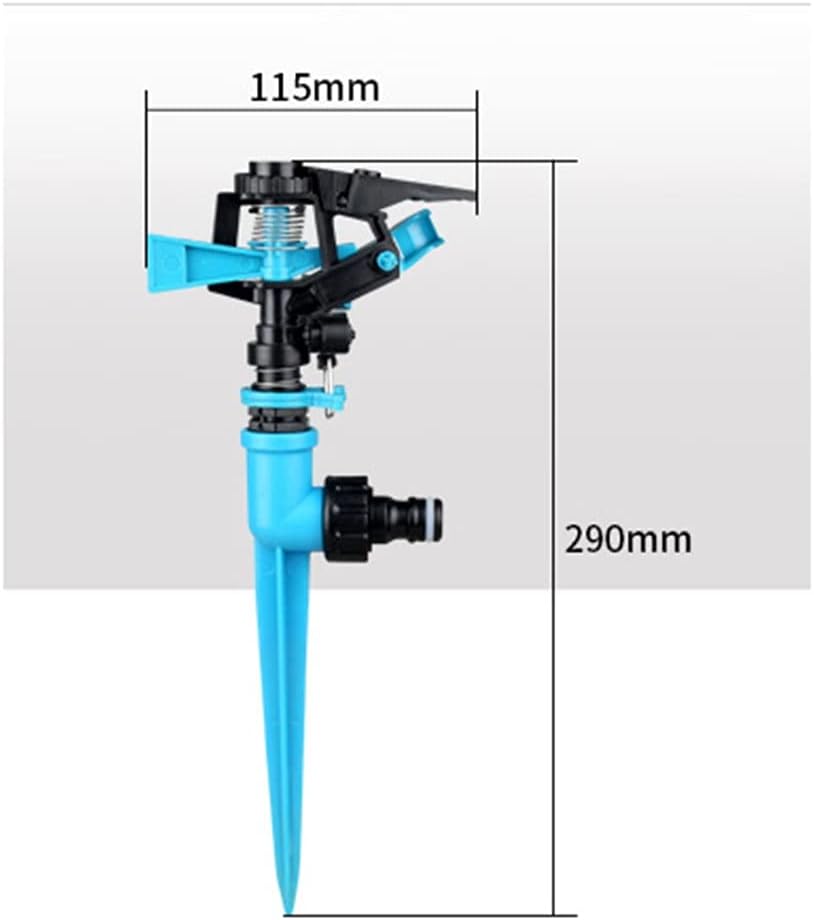 Size: 115'*290mm (width * height)Working method: hydraulic driveSpraying diameter: 8-10 meters.Material: ABS engineering plastic (metal spring).360 degree rotation + free swing irrigation.Hydraulically driven 360 rotating spraying/rotating spraying can be switched freely.Adjust different ranges according to your needs.Scope of application: used for lawn irrigation, garden sprinkling, roof cooling, etc.Packing list:A:1 *Garden SprinklerB:1 *Garden Sprinkler+Connector setNotice:Actual color may be slightly different from the image due to different monitor and light effect.Please allow 1-3cm deviation due to manual measurement.Due to manual measurement, please allow for a difference of 1-3 centimeters. Thank you for your understanding