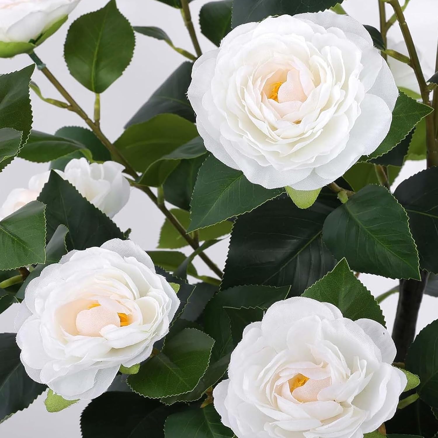 Intricately designed, a of artificial camellia trees boast various colors blooms, leaves, and realistic trunks replicating nature's splendor. Crafted from premium PE material, the faux flora is sun-protective, anti-fading, non-allergic, and smell-free. Minimal upkeep is needed, as these lifelike trees demand no watering, sunlight, fertilizing, or trimming. The package includes ground spikes for easy installation in soil or pots (not included), no tools required. Perfect for various the faux silk flora topiary plants seamlessly blend into your indoor and outdoor occasions.Features: Boasts gorgeous camellia flowers, vibrant green leaves, and natural-looking trunkMade of high-quality PE material that is anti-fading, non-allergic, and smell-freeSun-protective artificial plants are perfect for indoor and outdoor decorationNeeds no trimming, no sunshine, no watering, and no fertilizingInstalled into the soil or into a flowerpot (not included)Simple installation requires no toolsAdjust the tree gently to achieve the best display statePlease avoid direct exposure to sunlight and rain for a long term useSpecifications: Flowers Color:Light Yellow,White,Red,Pink,OrangeMaterial: PE, PP, Silk Overall Height: 43.3"Net Weight: 2.2 lbsPackage Includes: Artificial Camellia Trees