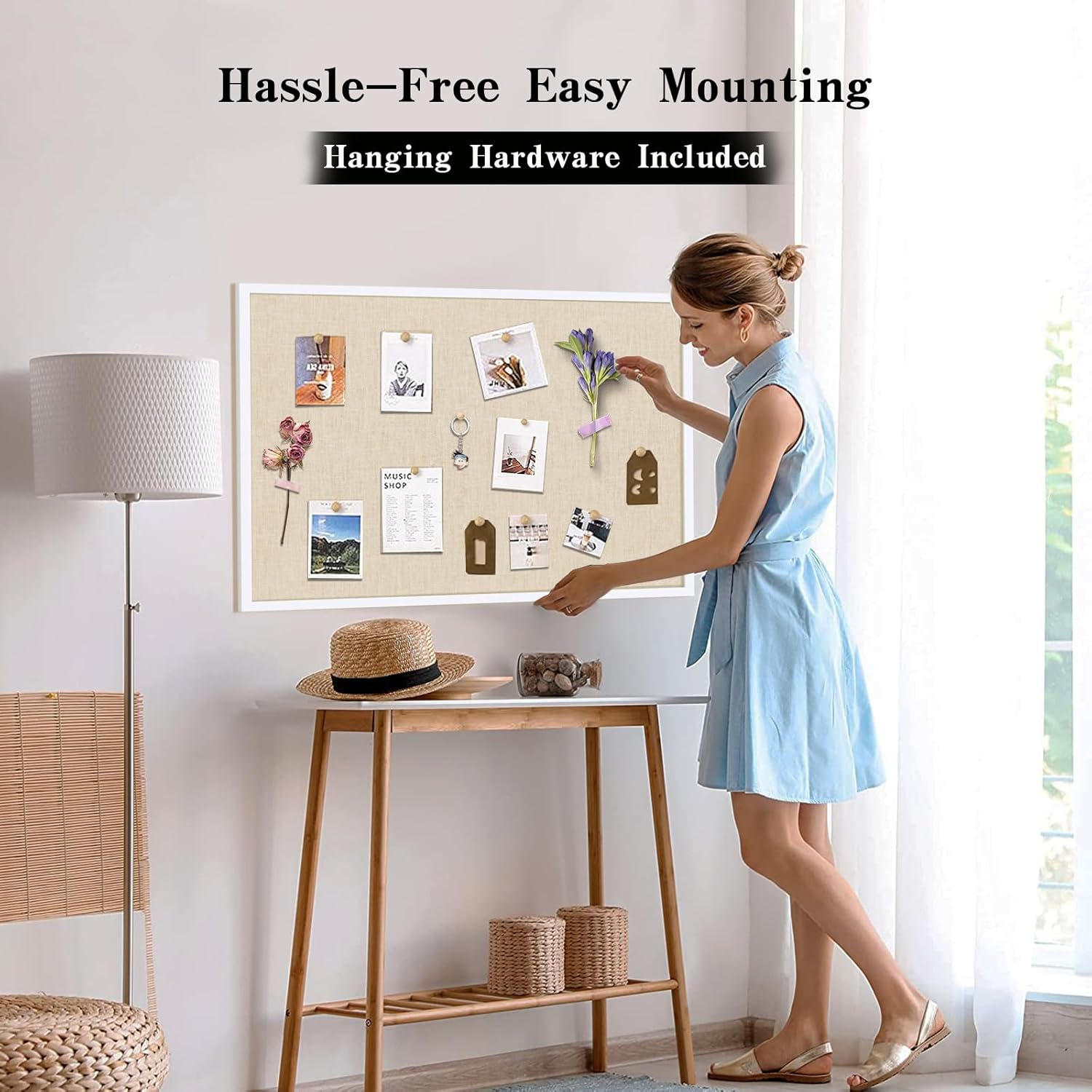 Bulletin Board for Decor, Cork Board with Linen Hanging Pin Wood Framed Display Picture Vision Bulletin Board for Wall School Office Bedroom Corkboard