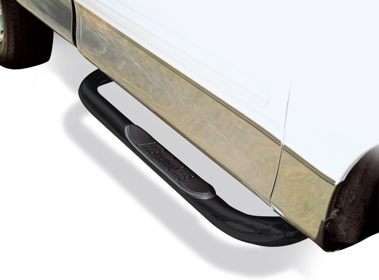 Custom Fit For An Extensive List Of Applications. No Drilling Required. Non- Slip Black Composite Step Pads. Installation Hardware/Instructions Incl.. Black Powder Coat/Triple Nickel Chrome w/5 Year Warranty. Polished Stainless Steel w/Limited Lifetime Warranty. Manufactured Of 3 In Dia. Tubing. Cab Length Applications.