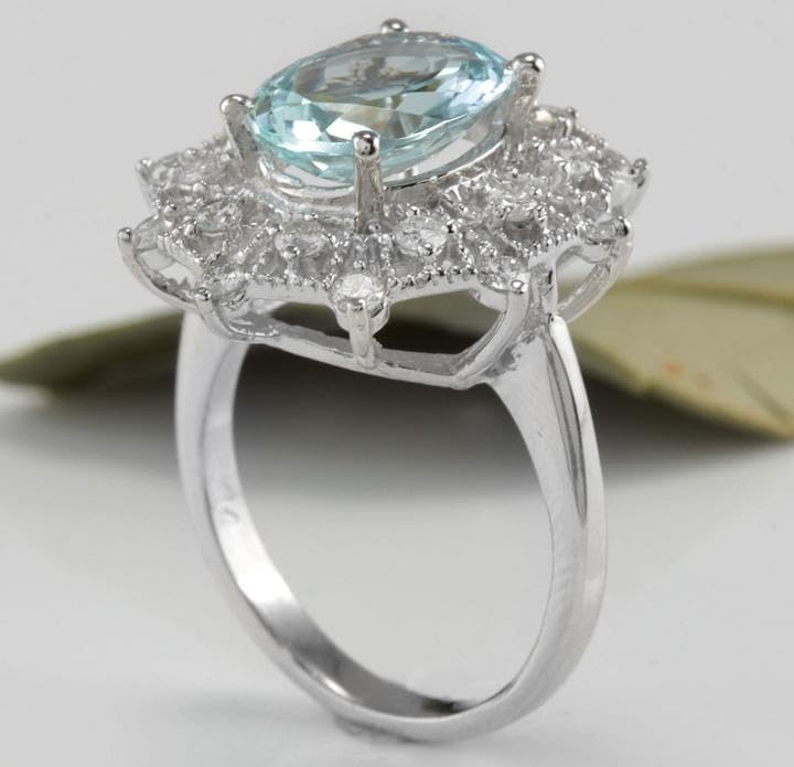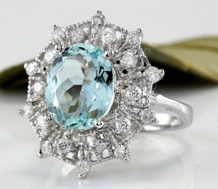 3.80 Carats Natural Aquamarine and Diamond 14K Solid White Gold RingSuggested Replacement Value: 7,300.00Total Natural Oval Cut Aquamarine Weights: Approx. 3.00 CaratsAquamarine Measures: 11 x 8.77mmAquamarine Treatment: HeatingNatural Round Diamonds Weight: Approx. 0.80 Carats (color G-H / Clarity SI)Ring total weight: 5.5gramsSKU #TF167
