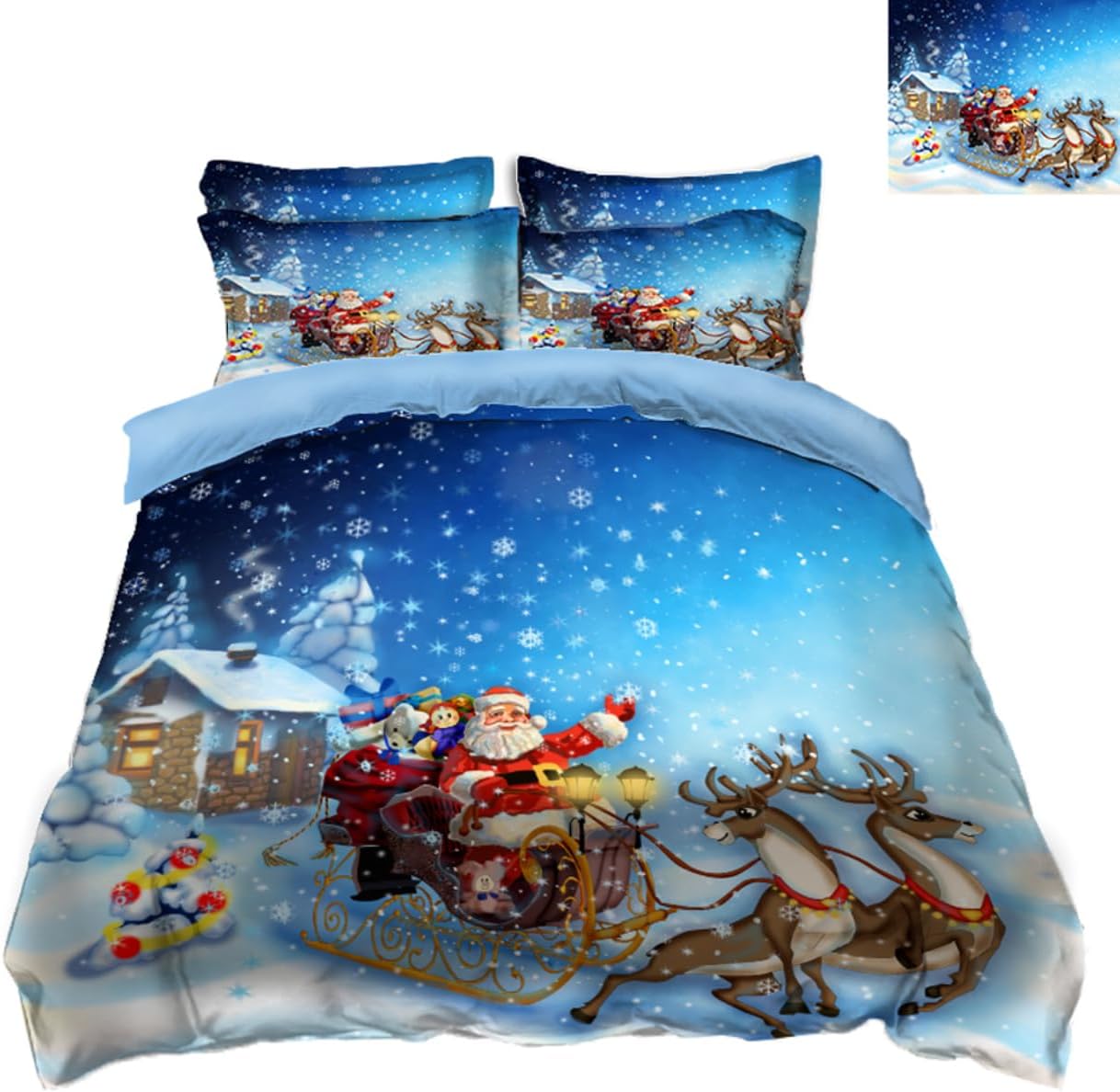 3D Bedding Set Christmas Santa Claus Print Duvet Cover Set Bedclothes with Pillowcase Home Textiles for Children Twin Queen Christmas Quilt Cover (US Twin,1)
