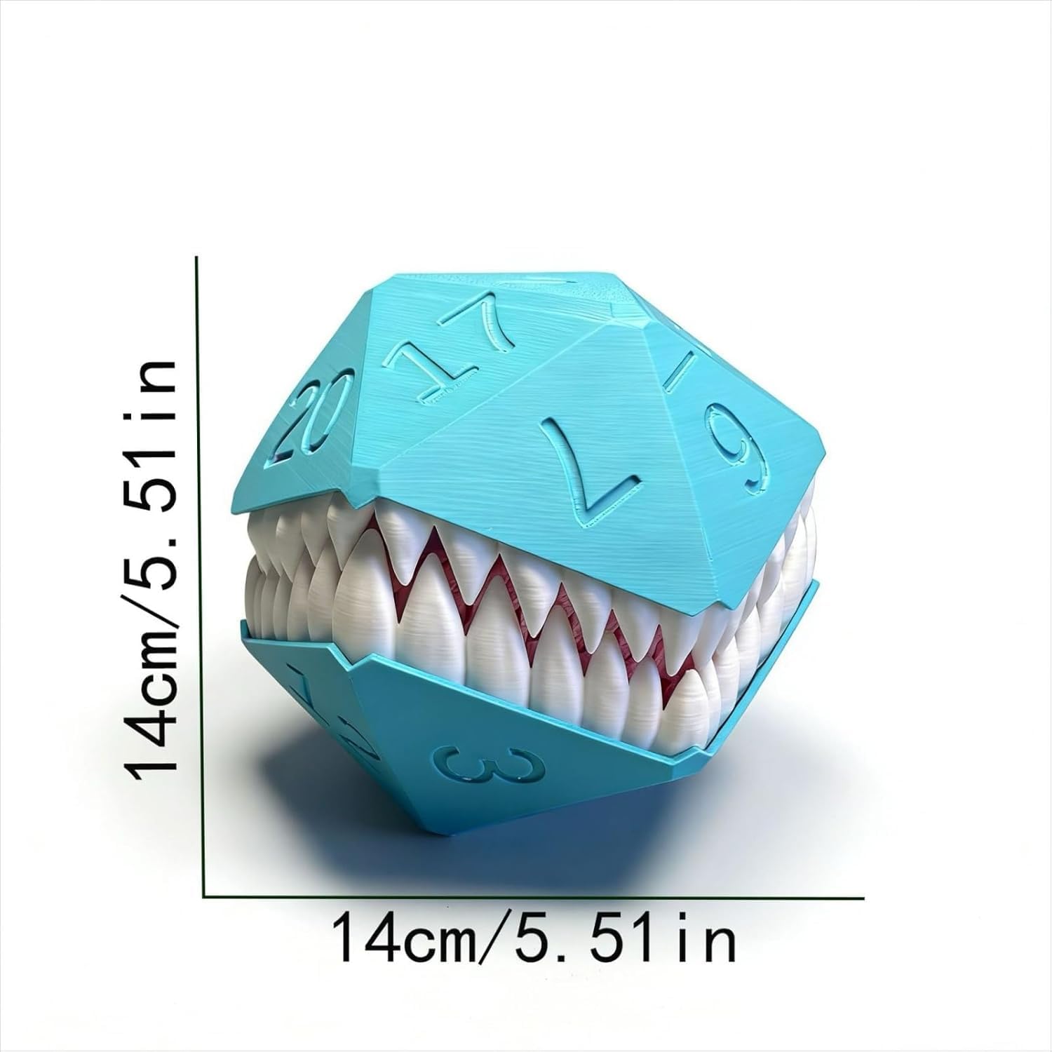 Unleash your tabletop gaming experience with this impressive 3D printed dice tower, featuring a fierce dragon-inspired design in striking turquoise. Standing approximately 5.5 inches tall and 5.5 inches wide, this functional piece of gaming art combines style with practicality. The tower's detailed geometric patterns and sharp teeth create an intimidating maw that adds dramatic flair to every dice roll. Perfect for RPG sessions, board games, or as a striking display piece, this dice tower ensures fair, randomized rolls while adding theatrical excitement to your gaming table. The tower's internal structure guides your dice through a carefully designed path, preventing dice from bouncing off the table. Compatible with standard polyhedral dice sets, this tower makes an excellent addition to any gaming setup or collector's shelf. The durable construction ensures consistent performance roll after roll, while its compact size makes it easily portable for gaming sessions away from home. A must-have accessory for serious gamers who appreciate both form and function in their gaming accessories.