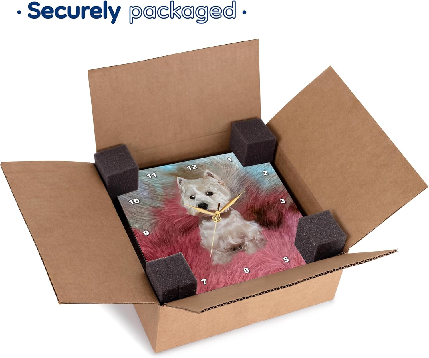 Westie Wall Clock is a wonderful compliment to any room in your home or office. Made of durable high grade aluminum. This clock has a high gloss mirror like, UV coated, scratch resistant finish and is suitable for a moist environment. Available in multiple sizes, requires one AA battery; not included. Battery box is not covered.