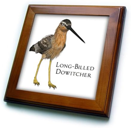 Long-Billed Dowitcher Shorebird Framed Tile is 8" x 8" with a 6" x 6" high gloss inset ceramic tile, surrounded by a solid wood frame with pre-drilled keyhole for easy wall mounting.