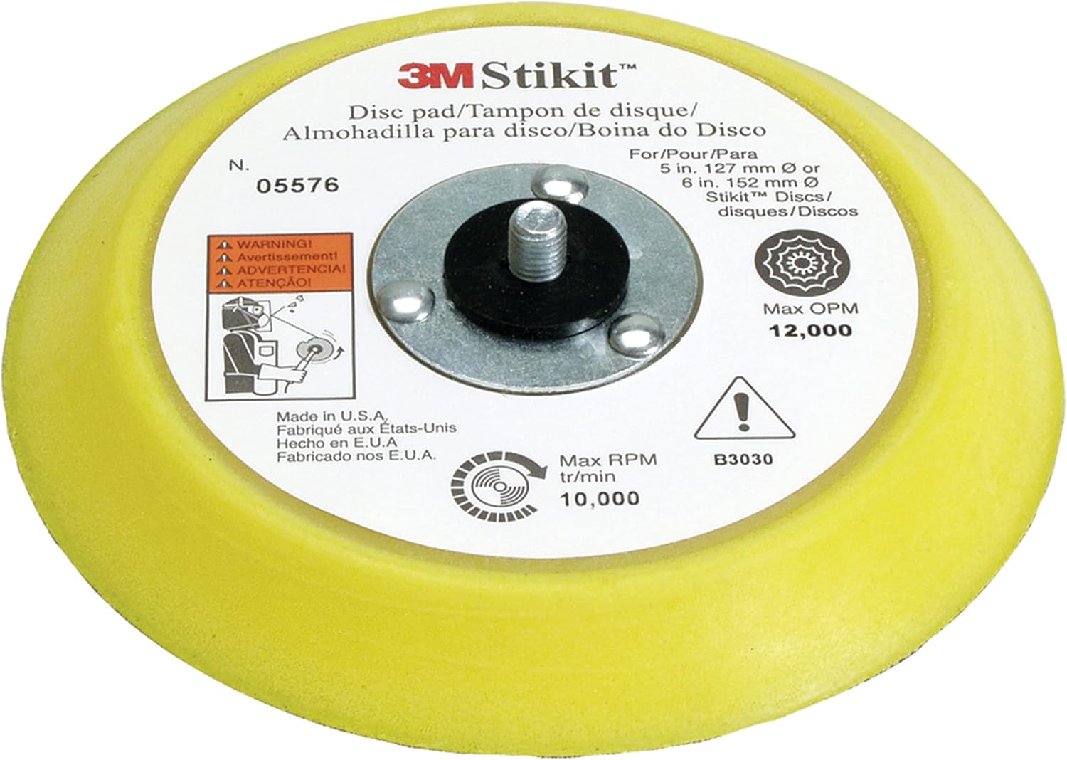 For use with 8 inch diameter Stikit discs to shape plastic filler. Attaches with 6 mounting holes. Fits Chicago Pneumatic 777 sander. Max 1,500 RPM.