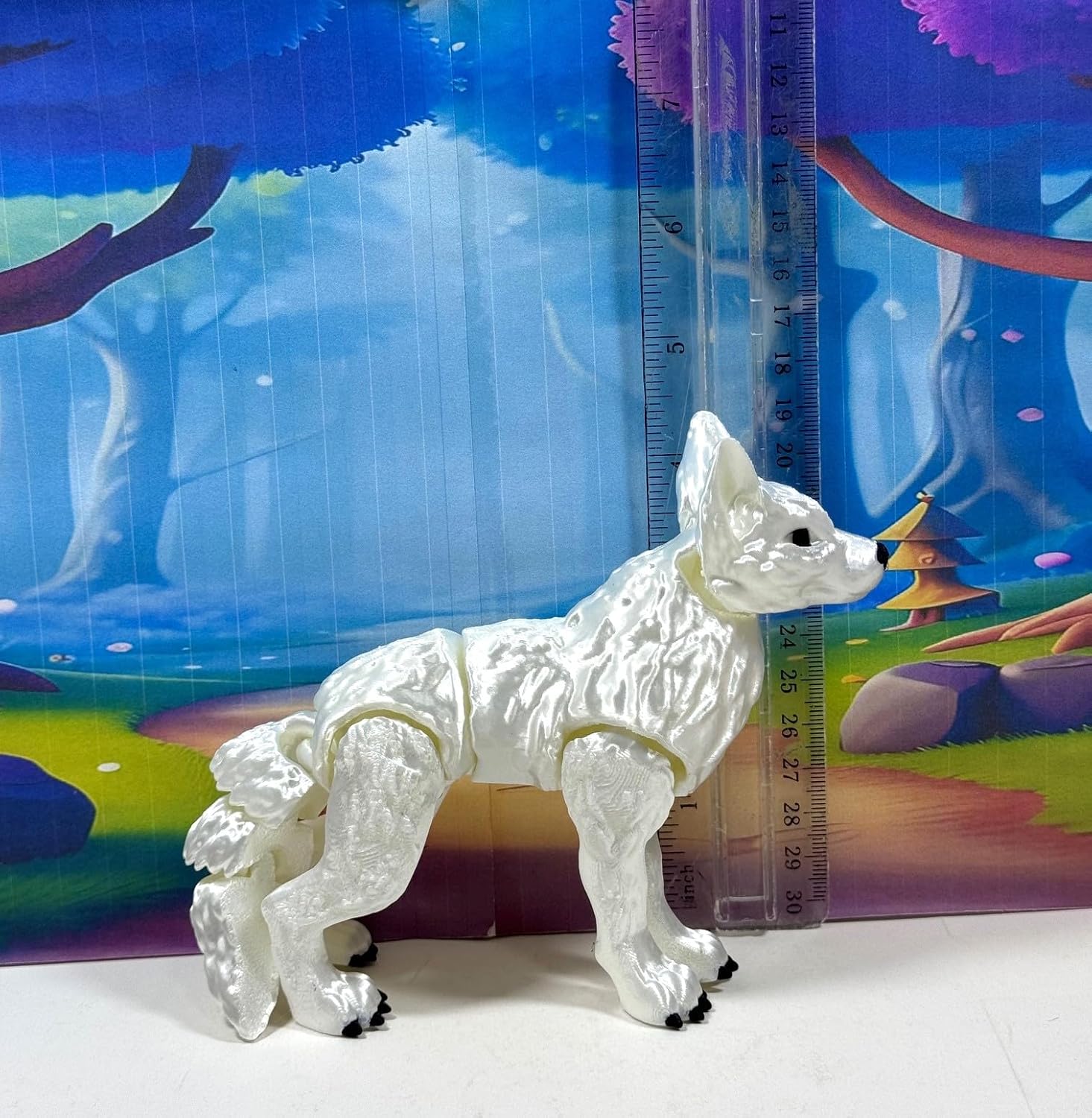 Introducing the Fun and Articulated Wolf - Your Articulated 3D-Printed Pal! These posable Wolf come in Small Medium and Large size in White and Black color, Meticulously crafted with an eye for detail, this interactive desk accessory is not just a source of entertainment, it's also a stress-relieving toy and a chic decor piece for any space. ------- Small Components Advisory: ------- Please be mindful that this product may contain small components and may not be suitable for very young children. Due to the nature of 3D printing, there is a potential for small components to detach if handled aggressively or dropped. As such, we advise against allowing younger children to engage with the WOLF. Please be aware that 3D printed objects may exhibit minor imperfections like layer lines, inherent to the printing process. While we strive for the highest quality, these imperfections contribute to the distinctive character of each piece, making each raccoon uniquely crafted for you. The available color options are illustrated in the provided photos. Keep in mind that variations in color may arise from discrepancies in filament production and the characteristics of your monitor or screen. Additionally, the use of multi-colored filament rolls can influence color distribution in the prints. ------- Licensing Information: ------- Authorized Design: NOHo3D holds the official authorization for the production of this exquisite design created by CinderWings3D.