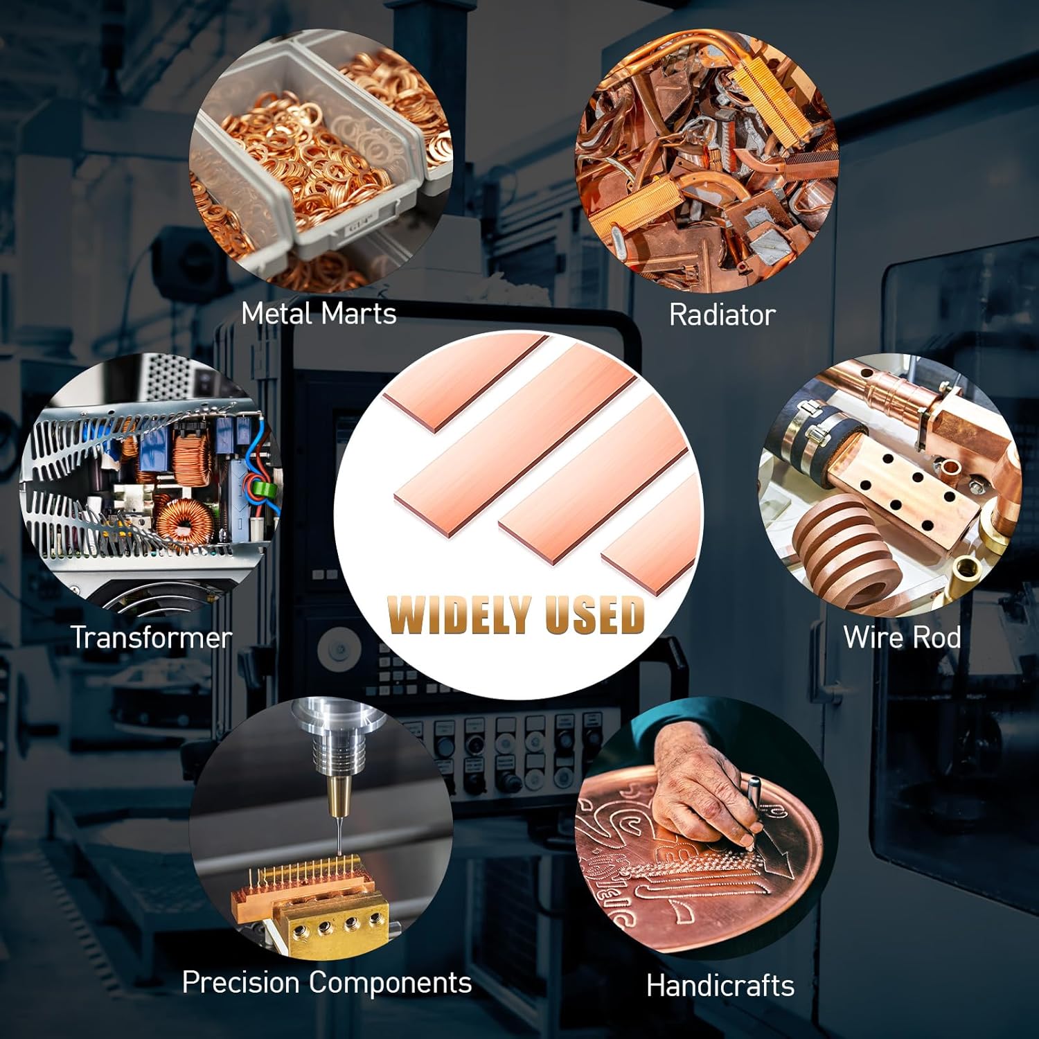 We are a factory specializing in the production of copper bars with many years of production experience. We carry out strict quality checks on our products and spend a lot of energy and money on the stability of each product to make sure that every customer who buys our flat copper bars gets good goods as much as possible. 3PCS C110 Copper Flat Bar,0.08" Thickness X 1" Width X 15.7" Length Copper Flat Bar Stock,Pure Copper Flat Bar Specifications: Material: Copper Thickness: 0.08" / 2mm Width: 1" / 25mm Length: 15.7" / 400m Features: This copper flat bar is versatile and can be used in a wide range of electrical, mechanical, architectural and other fields. The classic brass look also makes it a suitable material for decorative or aesthetic projects. Brass metal sheets come in practical sizes and shapes for easy storage. Whether you have a dedicated storage room or prefer to keep them within reach in your workshop, brass strips take up minimal space for efficient organization and access. Reliable Service: As we are so strict with our quality, we have confidence. So we would refund 2 times price if you receive defective product. What's in the package: 3 x Copper flat strips