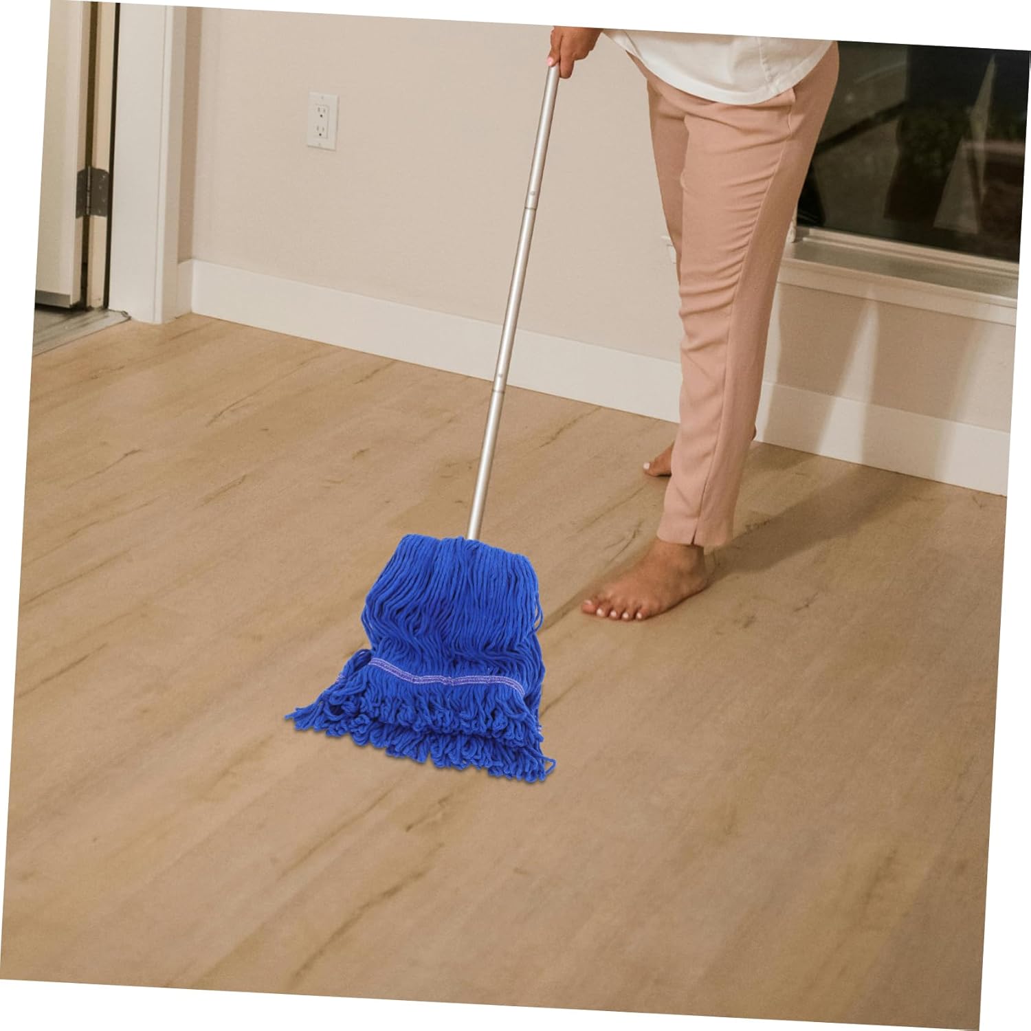DescriptionThis replacement mop head is for waxing floors, thanks to its long cotton strings that provide excellent coverage and absorption. The construction ensures it can withstand frequent use, making it a reliable choice for maintaining clean and shiny floors in any setting, from homes to industrial spaces.Features-Color:Blue-Material:Cotton String -Size: 36.00X17.00X5.00cm/14.15X6.68X1.97in -Efficient cleaning design: the loopend design prevents tangling and ensures smooth cleaning, making it for tackling dirt and grime in hightraffic areas-Quick replacement: easytoreplace mop head allows for simple maintenance, ensuring your cleaning routine remains uninterrupted and efficient-Heavy duty construction: built for durability, this mop head withstands rigorous use in commercial, industrial, and residential environments-Wet resistant headband: the moistureresistant headband allows the mop head to dry quickly after use, extending its lifespan-Versatile application: suitable for cleaning floors in offices, hotels, homes, and industrial spaces, this mop head adapts to various cleaning needs