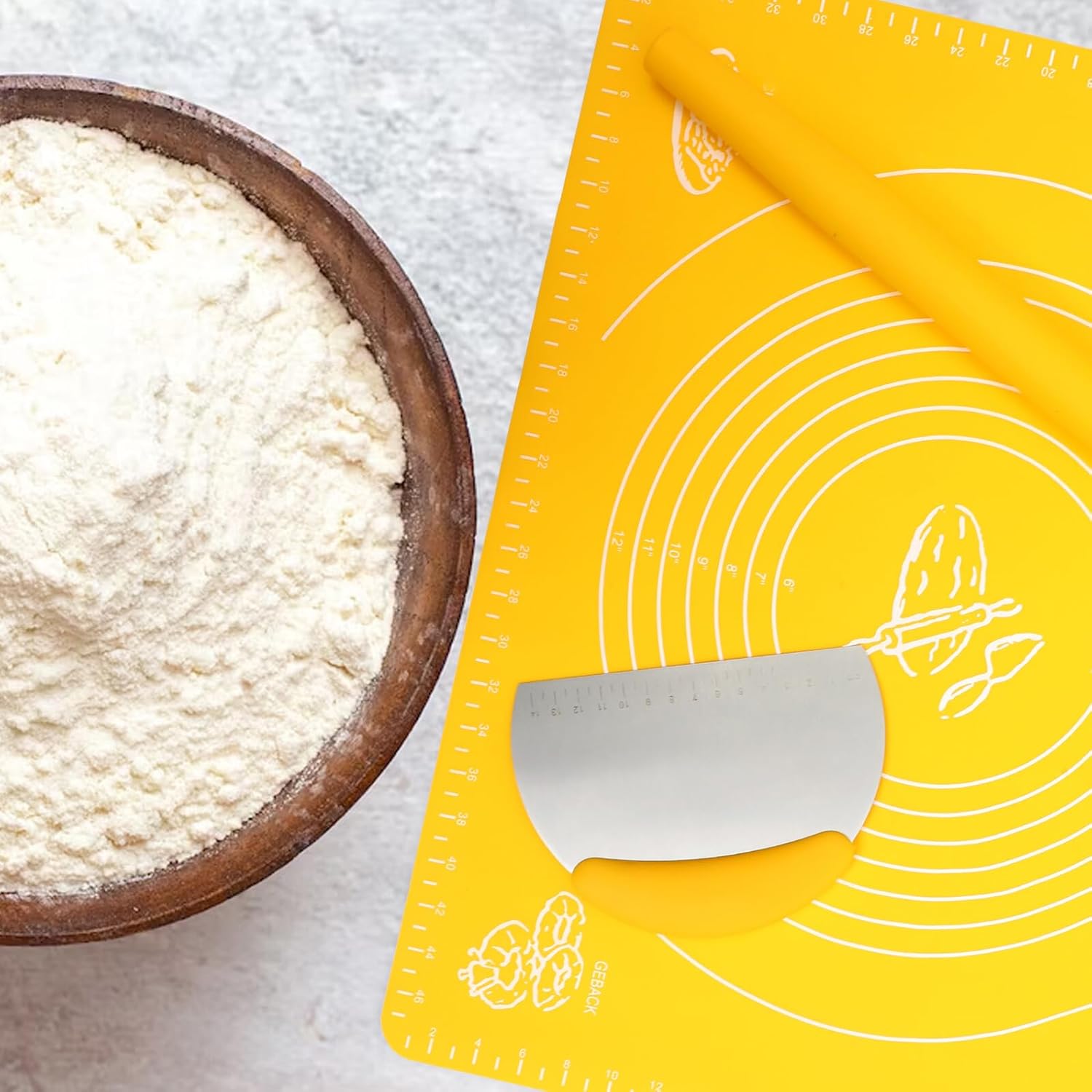 Package Include 3 x baking tools Characteristics -Color: Yellow -Size: 50.00X40.00X0.30cm/19.65X15.72X0.12in -Product Info:Kneading pad set -Material: Silicone - Non-stick surface, making dough easy to roll and easy to clean practical kitchen tool. - Secure and firm handles that you can apply maximum pressure roller for baking. - tools, easy to use and hold baking tools. - Widely used in making pastries, handmade noodles, pizza and bread kitchen tools. - This kitchen tool will provide more convenience and warmth for your home life dumpling rolling pin.Goods Informationpractical rolling pin for DIY or professional use in cake shops, bakeries etc.simple dough mat This set of baking tool is made of silicone material, which is and can be used for a long time.roller for baking It is an tool for making desserts for family, friends and guests