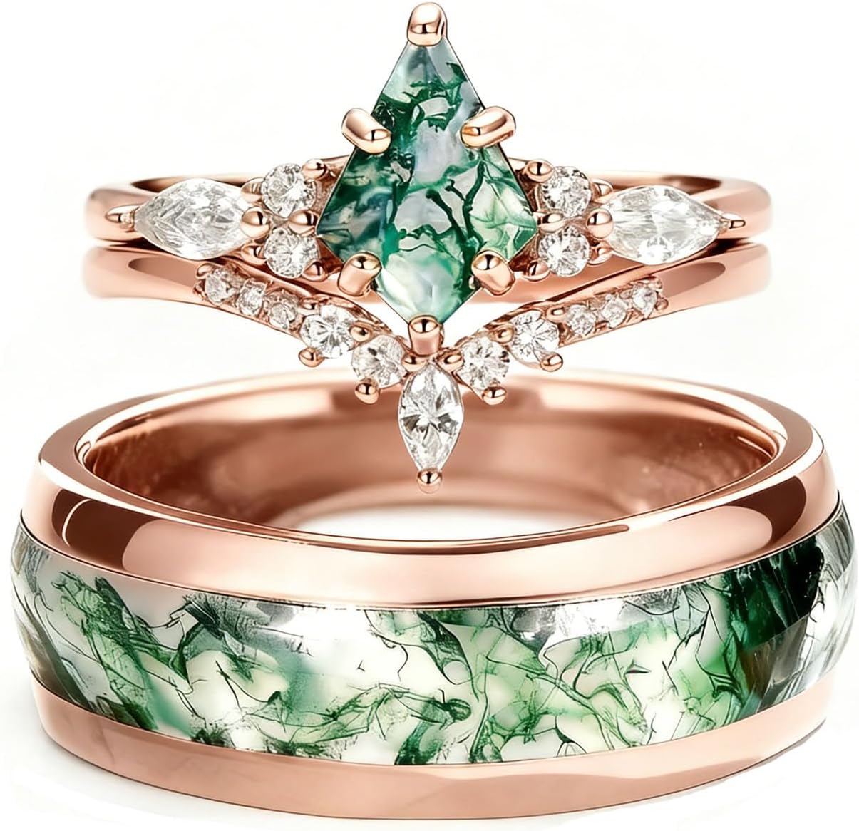 Metal type: 925 Sterling silverTotal Weight (CT. T.W.):2ctClarity:VVS1Stone Type:Moss Agate & MoissaniteStone Color:Green & WhiteMetal Color:Silver/Rose/Yellow Gold;Metal Finish:PolishedMetal Type:Platinum Plated Silver
