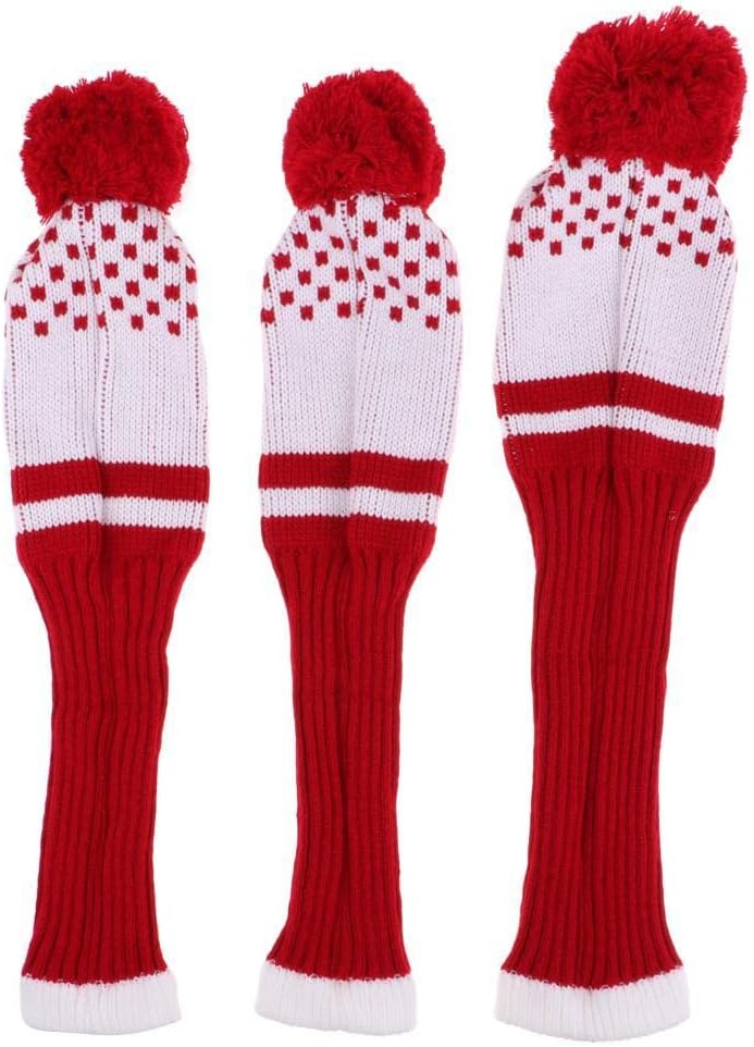 Description: - Set of 3 golf pom pom wood head cover knit sock headcovers. - Double strength knit material,elastic band keeps head cover on tight. - Long neck sock provides extra shaft protection. - Easy to put on and off. - Tag numbers included. (1# for Driver Head, 3# 5# for Fairway Heads)Package Includes:Set of 3 Pom Pom HeadcoversNote:Please allow slightly difference due to manual measurement. Color may be slightly different since different monitor. Thanks!