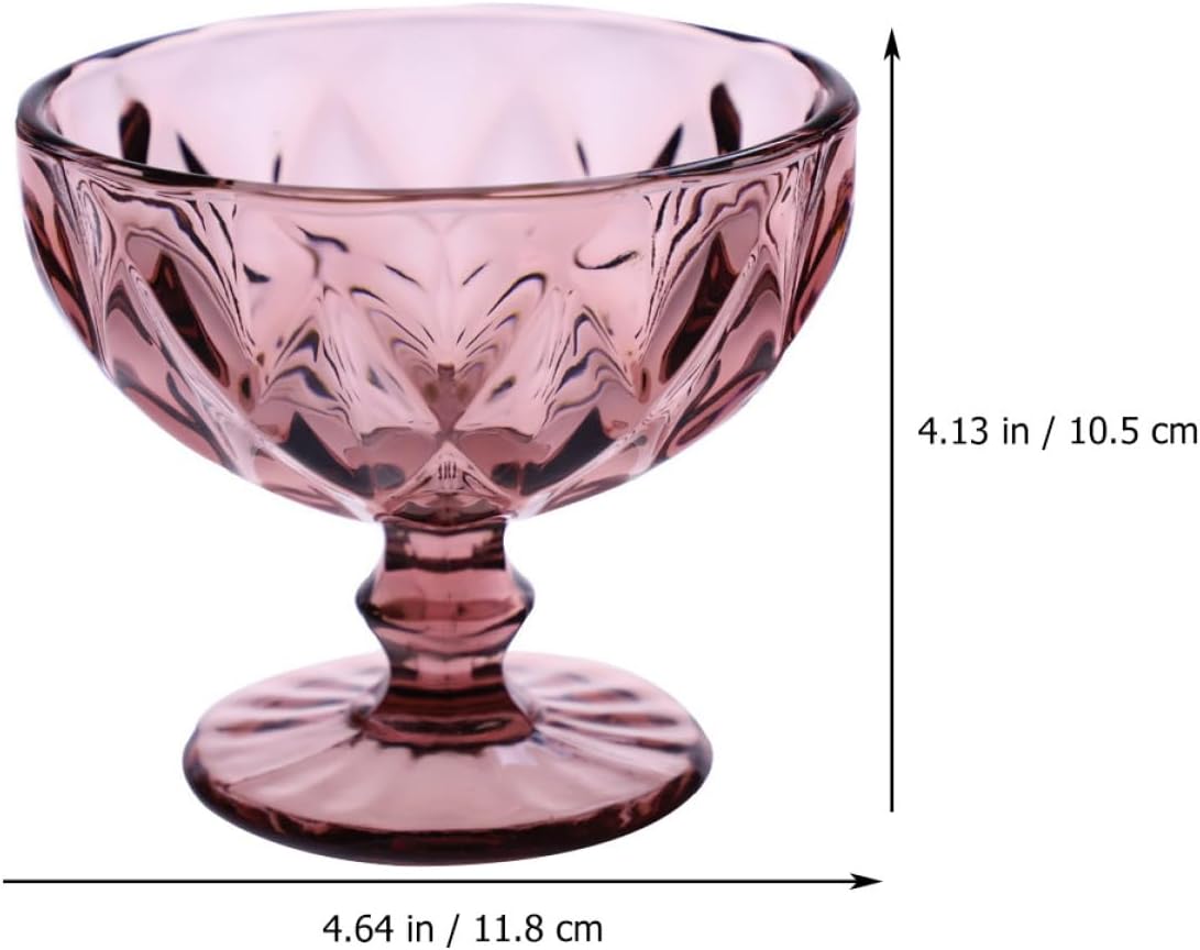 Package List 3 x Dessert Cups Features -Size: 11.80X11.80X10.50cm/4.64X4.64X4.13in -Color: Purple, Blue, Green -Material: Glass -Product Info:Ice cream cup -Suitable for various occasions, such as parties, restaurants, bars, homes, etc iced cream dessert bowl. -Designed in bowl shaped and has a delicate appearance, also a photography prop Delicate Dessert Glasses. - and fine craftsmanship, sturdy and for a long time. -It can hold ice cream, desserts, yogurt, pudding, etc, easy to use footed dessert bowl. -The appearance design is unique and creative, it is a good decoration small dessert footed bowls.Goods Descriptionice cream footed bowls Textured surface, it is easy to clean.dessert glass A nice food storage container for you.salad cups This product is a dessert cup, made of premium glass material, to use.Delicate Dessert Glasses You can store your all kinds of food, such as pudding, dessert, ice cream, etc