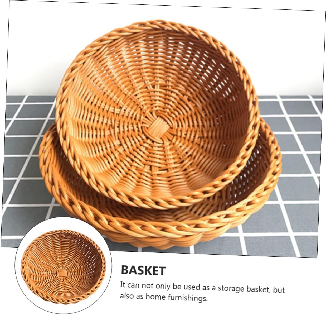 Package Include 3 x basket Features - Color: Chocolate Basket. - Material: PP Storage Basket. - Size: About 25.00X25.00X8.00cm/9.82X9.82X3.14inch Household Fruit Basket. - Made of , it is and in use Picnic Basket. - You can put it anywhere in your home, also can be used as storage holder Woven Storage Container. - Beautiful and generous, simple but not simple, fashionable design Storage Container. - The rural style weaving craft fruit picnic basket is very beautiful and Weaving Basket. - It can not only be used as a storage basket, but also as home furnishings Bread Basket.Goods DescriptionWoven Basket Are you still looking for a multi-purpose simulated rattan woven storage basket? This household storage basket is the choice for you.Household Basket It fits decorative styles such modern farmhouse, rural style, minimalist, etc.Bread Storage Basket This storage basket is fine in details and in workmanship, which makes your life becomes more refined and tasteful
