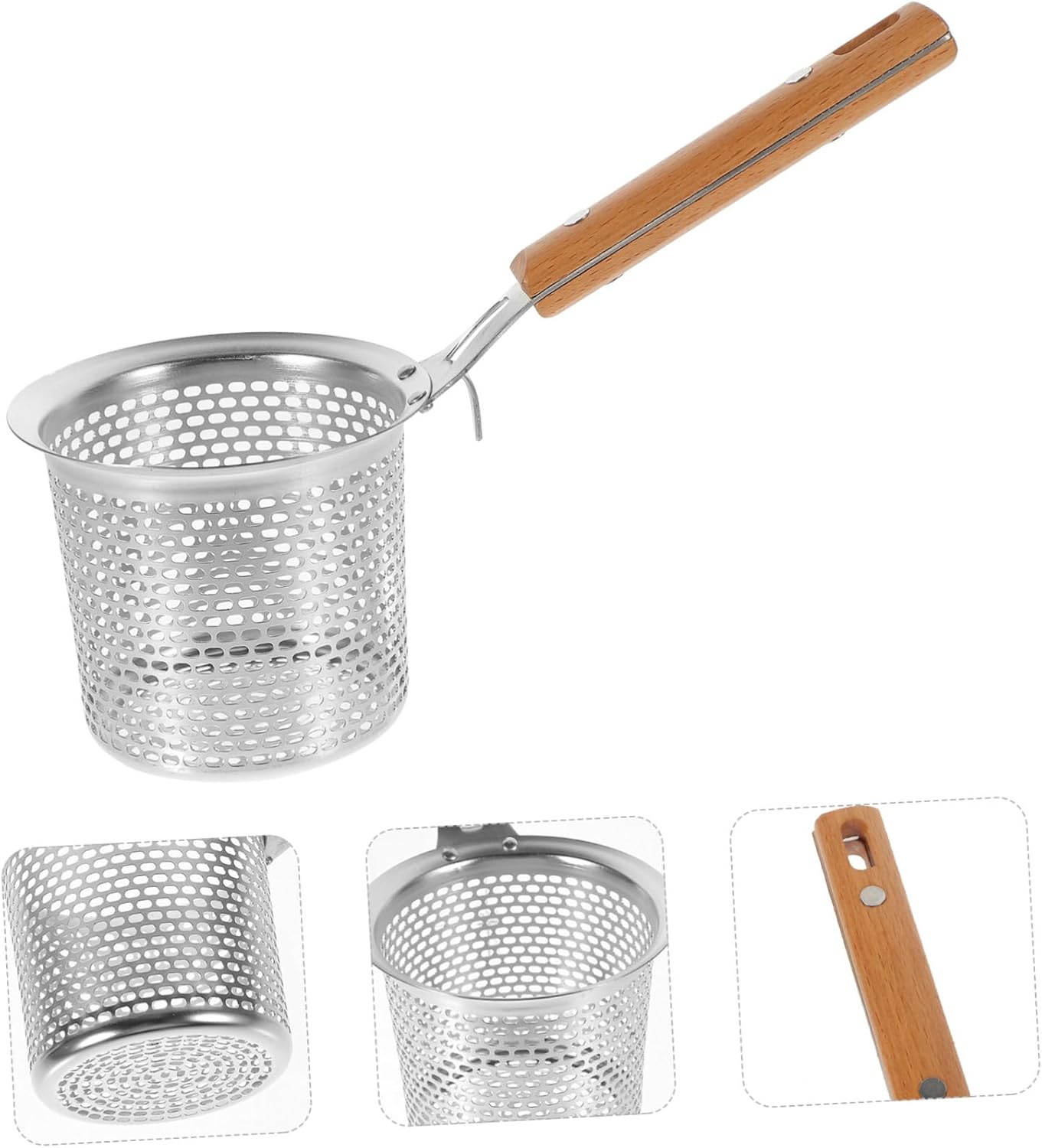 Package List 3 x strainer spoon(oblique handle) Characteristics - Size: 23.50X16.20X10.10cm/9.24X6.37X3.97in food-grade strainers spoon - Material: Stainless steel, wood pasta strainer with handle - and easy to clean. This spoon can easily pasta or noodles pasta drainer. - ColorSilver spaghetti spoon - Fine mesh design makes this strainer spoon easily filter the water and quickly dry the food pasta basket for boiling. - This Colander Spoon is specially designed for food filtration, easy to use, save strainer spoon. - The material is and light, which is wear resistance and for the lasting time use strainer for pot. - When scooping up the food, it is easy to let the liquid flow out, used for your noodles, wonton, etc. noodle strainer.Goods Descriptionpasta scoop stainless steel Our mesh pasta basket is made from stainless steel and wood, and to use.portable noodle strainers Filtering oil or other food with this basket, it is easy and convenient to use! Treat your family to delicious food every night with ease.pasta strainer basket Highly recommended for you!