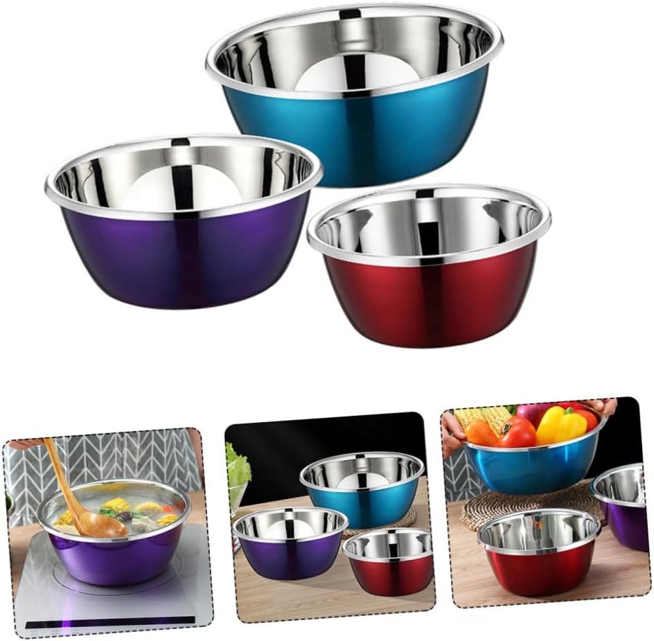 Package List 3 x stainless steel mixing bowl sets Features -Size : About 24.00X24.00X10.00cm/9.44X9.44X3.93in. -Size S: About 20.00X20.00X9.00cm/7.87X7.87X3.54in. -Material: Stainless steel. -Product Info:Seasoning cylinder set -Size L: About 28.00X28.00X11.00cm/11.00X11.00X4.32in. - Perfect for gifting to loved ones on Christmas, holidays, and other special occasions stainless steel bowls. - The multipurpose food serving bowl also can be used in bakery as a mixing bowl metal mixing bowls. - Great for whisking and beating and excellent for mixing batters, tossing salads, marinating and storing stainless steel containers. - Thickened design, the different capacity design use for different application, can be used to wash vegetables or fruits stainless steel mixing bowls. - Manufactured with stainless steel material, and practical enough to use.Goods Informationmetal food containers A good gift for friends, families and co-workers, etc.mixing bowl stainless steel Made of stainless steel, with wide flat rim for smooth pouring, and a flat base for stability.stainless steel container Are you still looking for practical mixing bowls? Smooth surface and fine craftsmanship, which can save your time and labor.metal mixing bowl Perfect for any kitchen