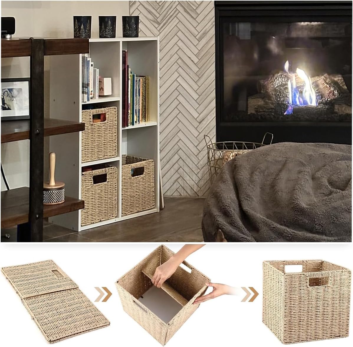 Wicker Storage Basket, Set of 3 Open Home Storage Bins, Handmade Woven Paper Rope Storage Baskets for Organizing, Foldable Rectangular Cube Storage Organizer Bins Baskets for Shelves & Decoration. Why Do You Choose Our Shelf Woven Baskets? What You Get: Super valued set includes 3 pack woven basket for storage. Baskets Dimensions: The storage basket measures 10.5''L x10.5''W x 10.5''H medium woven baskets for storage. Multiple Purposes: You can use this weave storage bin for bedroom, study, living room, kitchen, bathroom and more places, helping you organize your clothes, and you can also use it as a house decoration to hold bouquets to create a rustic touch. How to Clean: The tough weaving storage bins is easy to clean. NOTE: Please use soft and dry cloth to wipe the basket, but not use water to wash or immerse it in the water. Boho rustic woven square baskets is a great color that pairs with a lot of other colors. Also a great choice for home decoration. If you have any questions, place consult us, we will give you an answer within 12 hours. If you need Paper Rope Wicker Baskets、Woven Placemats、Water Hyacinth Tablemats、Bottle Opener for Birthday Party or Christmas Stocking Holders, our store has a variety of styles and colors, please click on the store name above.