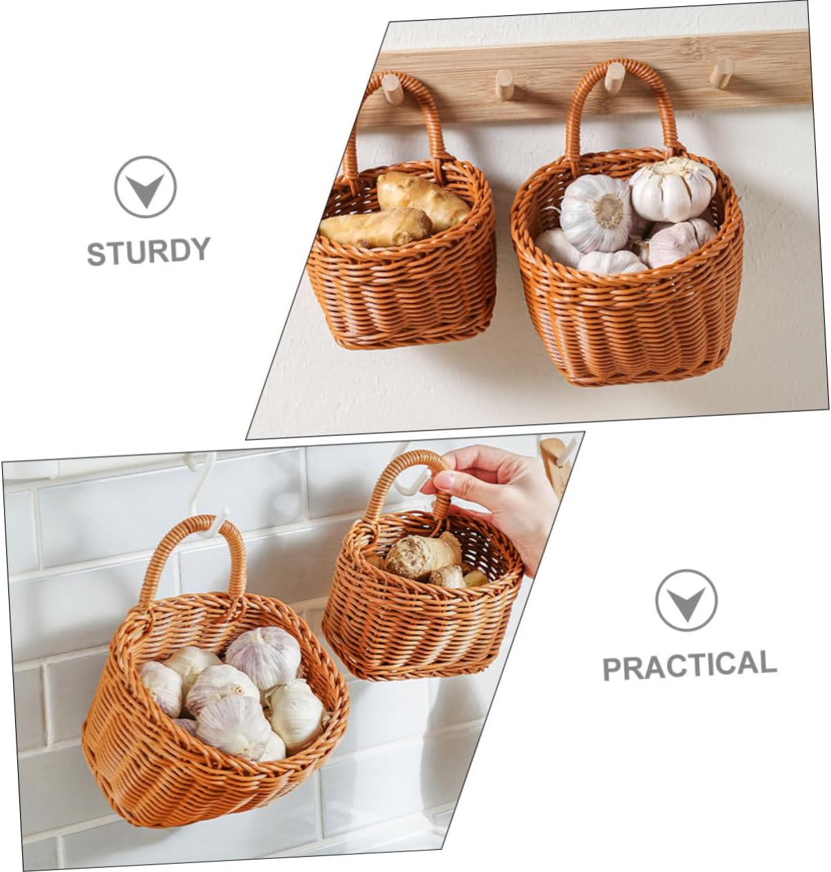 Package Include 3 hanging storage basket 3 x S hanging storage basket Characteristics - Sturdy construction: Made of sturdy materials to use. Can put flowers in this hanging basket. hanging vegetable basket - Space-saving: Can be hung on the wall to save space in your kitchen or garden. Simply clean with a damp cloth hanging for kitchen. -Color:Light Brown vegetable hanging basket -Size:20.00X13.00X19.00cm/7.86X5.11X7.47in(L) kitchen - Stylish design: Woven design of this wall hanging storage basket adds a touch of style to your home decor hanging for organizing. -Size:14.50X11.00X15.00cm/5.70X4.32X5.89in(S) hanging basket for onions and potatoes - Versatile: This wall storage basket is perfect for storing garlic, ginger, fruits, vegetables, flowers and more veggie hanger basket. -Material:Pp, rattan hanging produce basket for kitchen - Excellent woven craft make this basket simple in look but very practical in use, give you a pleasant using experience. hanging wall vegetable Goods Informationhanging vegetable for kitchen Are you still looking wall hanging storage basket? This hanging woven basket is the perfect choice for you.hanging fruit basket for kitchen Woven basket with fine details and good workmanship helps you contain what you need and makes your life becomes more refined and tasteful.hanging basket for onions and potatoes It fits most decor styles such modern farmhouse, rural style, etc
