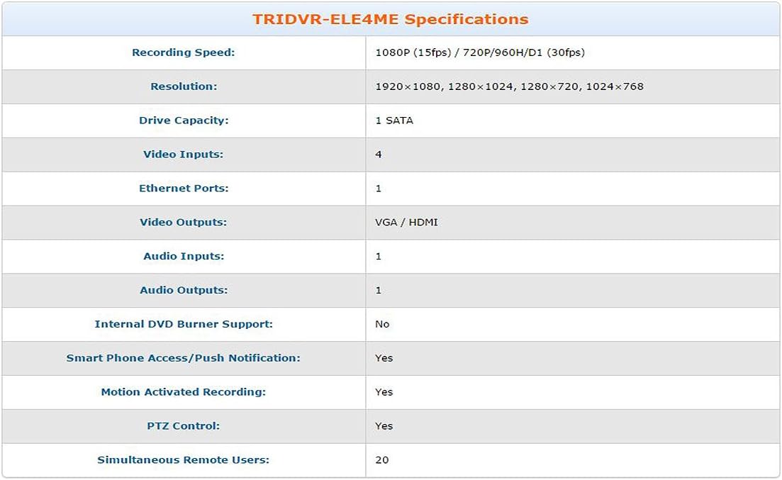 | Model Number | TRIDVR-ELE4ME |