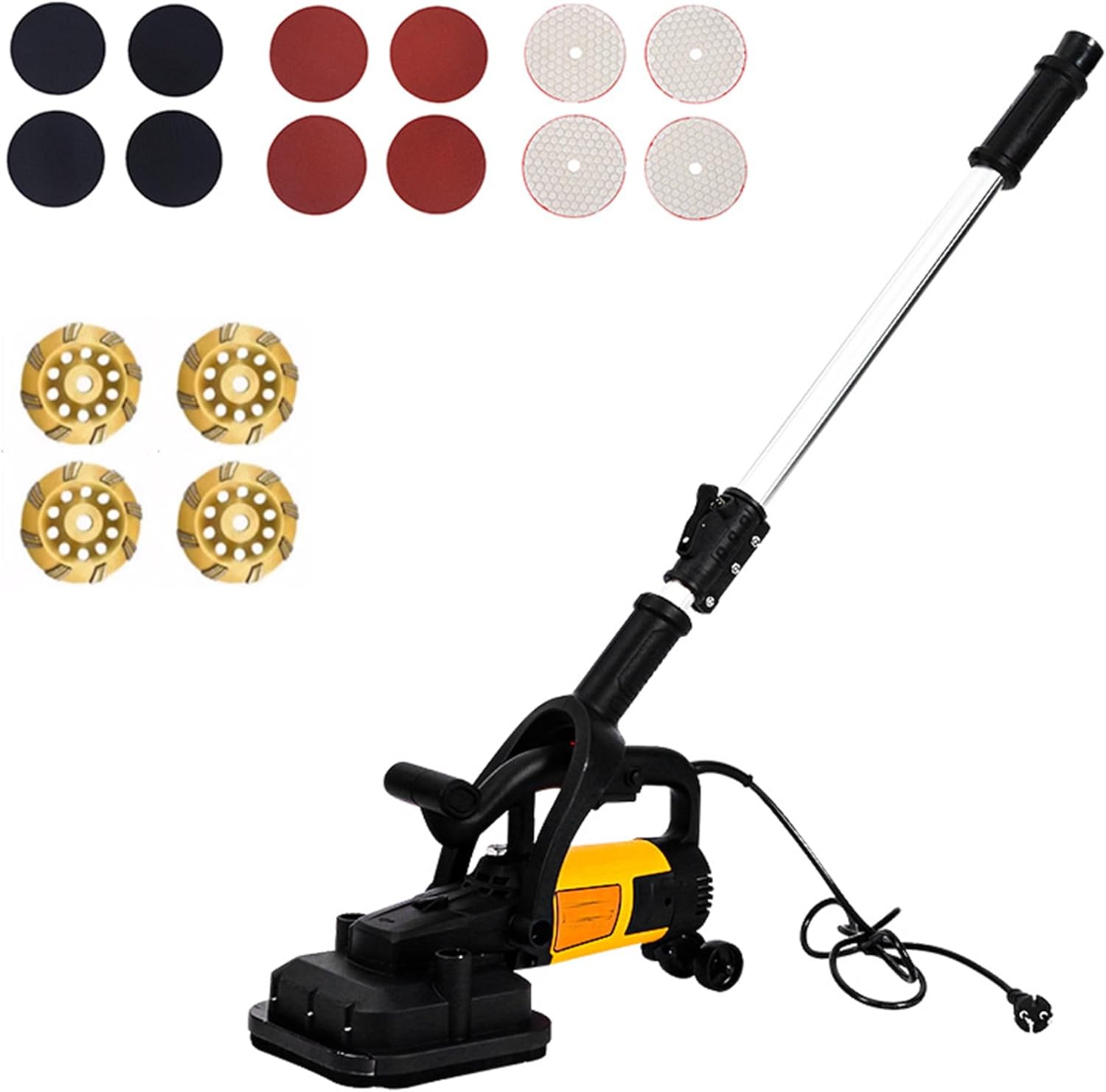 Introducing the professional-grade 3800W Electric Smoothing Machine, designed to tackle the most demanding rendering, grinding, and finishing tasks with incredible ease. This powerful tool is your all-in-one solution for transforming rough, uneven surfaces into perfectly smooth finishes on concrete floors, brick walls, marble countertops, and more. Its robust pure copper motor delivers sustained power, ensuring you can work longer without burnout.Product Features:- Powerful 3800W Pure Copper MotorBuilt for stability and high performance, the industrial-grade pure copper motor delivers relentless power for tough grinding on concrete and marble.- 4-Wheel Smoothing DesignThe four-wheel structure covers more area for faster work, reduces vibration, and ensures a smoother finish on floors and walls.- 6-Speed AdjustmentSwitch between six speed settings for full control over any task, from aggressive grinding to delicate finishing.- Versatile with Essential AccessoriesIncludes diamond, resin, and sandpaper discs for various materials. Features an ergonomic auxiliary handle and safety lock.