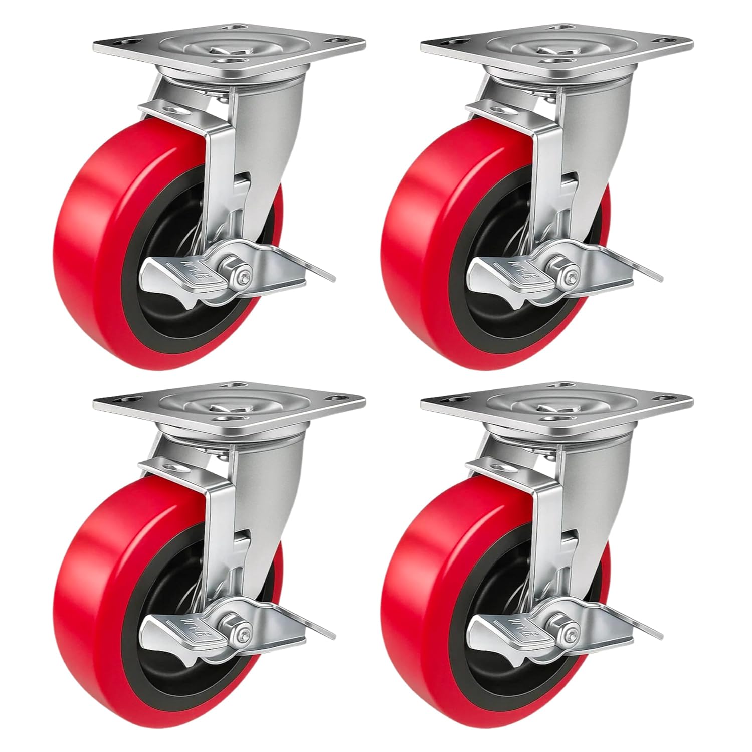 Introducing our Heavy Duty Caster Set with Polyurethane Wheels, designed for reliable and skid-free mobility. Available in 4", 5", and 6" diameters, these casters feature a 3-15/16" x 4-1/2" top plate for stability. Built for durability and versatility, our Heavy Duty Caster Set ensures smooth and stable movement in various configurations. Choose the diameter and option that suits your needs and experience reliable performance. Upgrade your mobility solutions – choose our Heavy Duty Caster Set. Options: 4 Rigid, 4 Swivel, 4 SB (4 Swivel with Brake), 2R + 2S (2 Rigid + 2 Swivel), 2R + 2SB (2 Rigid + 2 Swivel with Brake), 2S + 2SB (2 Swivel + 2 Swivel with Brake)
