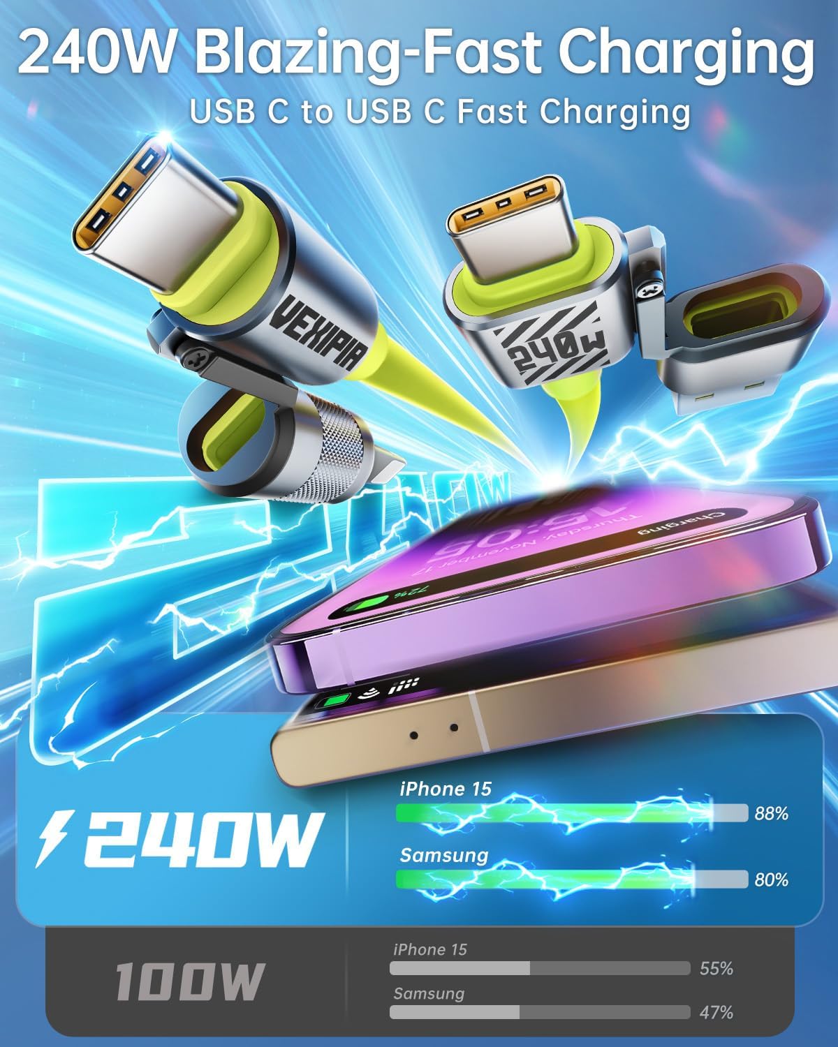 | Included Components | 240W 4 in 1 USB C to USB C Fast Charging Cable,5ft Green |
