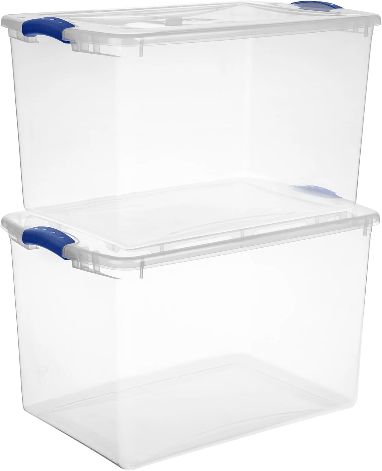 (4 pack) Clear View Storage Container, 66 Quart Blue Plastic Bin with Latch Lid, Easy Content Identification
