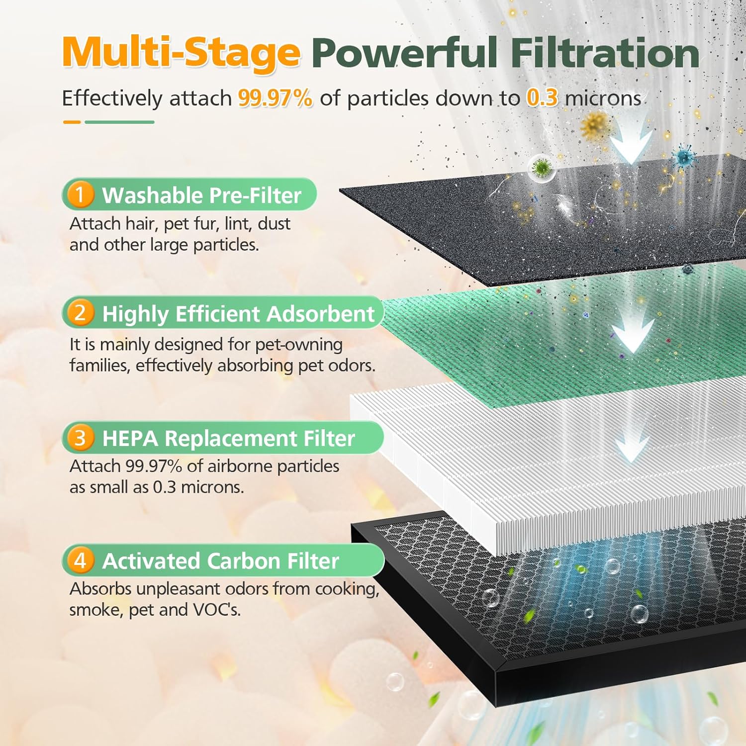 | Material Type | โ Washable Pre-Filter โก HEPA Filter โขActivated Carbon Filter |