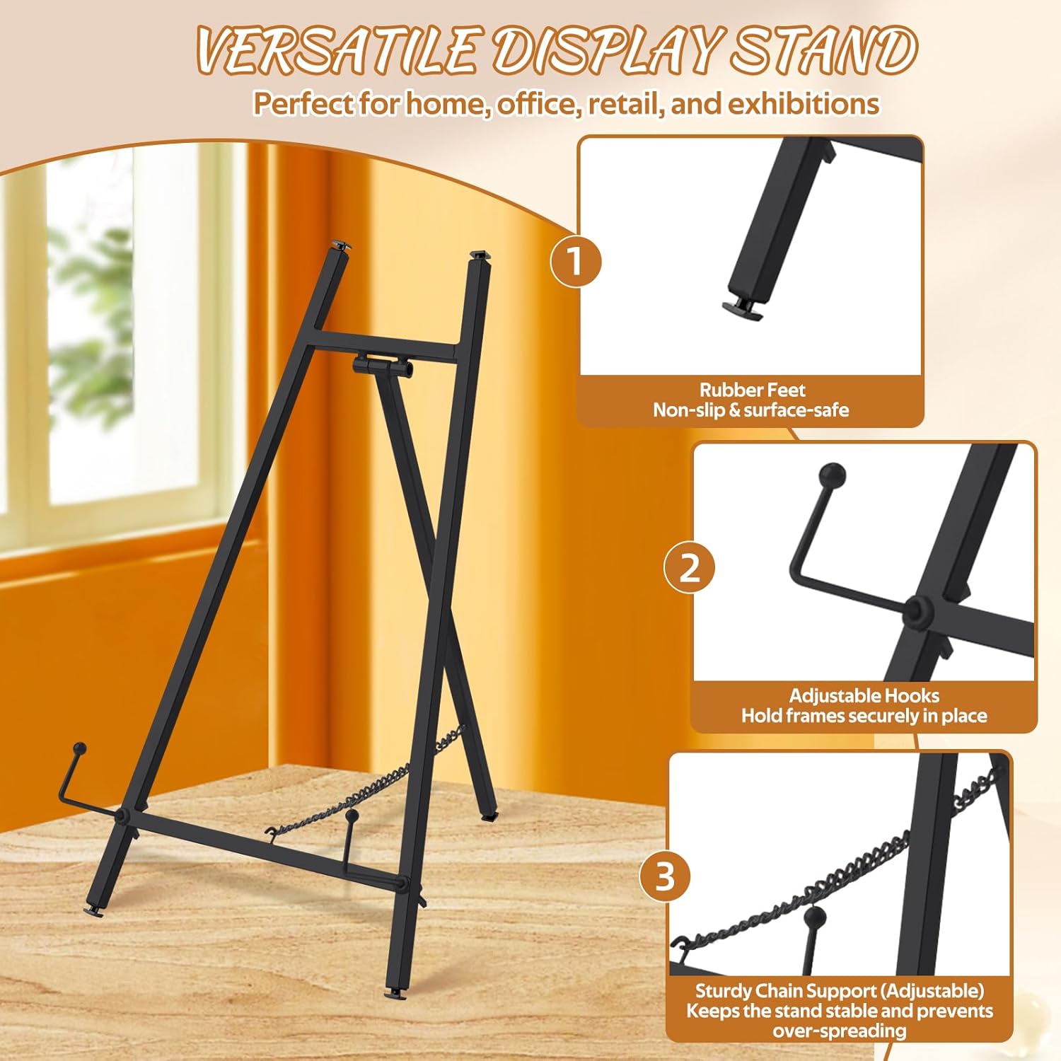 Metal Easel Stand 16.5" H x 8.7" W x 4.3" D Table Top Easel Stand for Display Tripod Art Picture Mirror Modern Plate Holder for Display Photo, Book, Wedding Sign, Menu Board, Canvas
