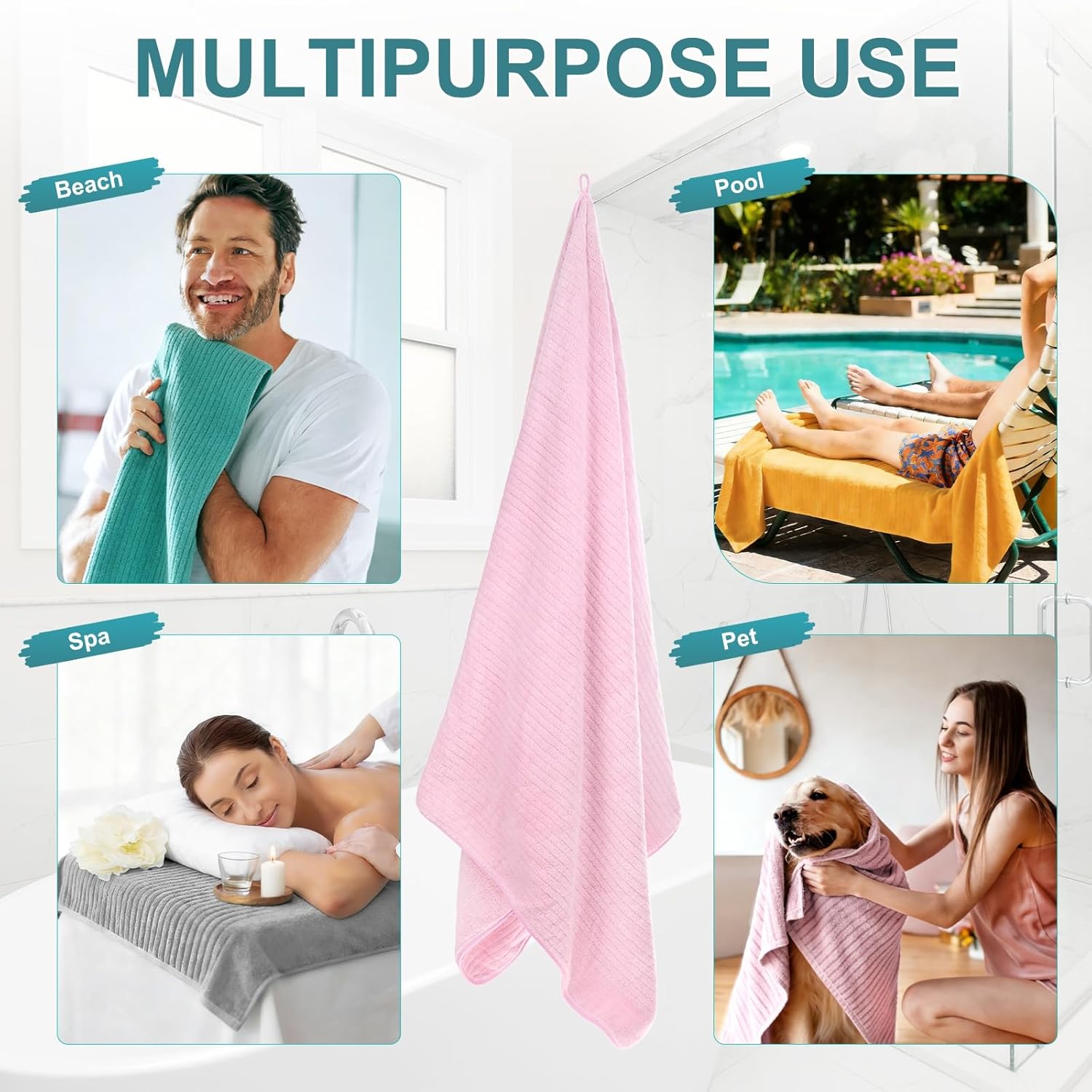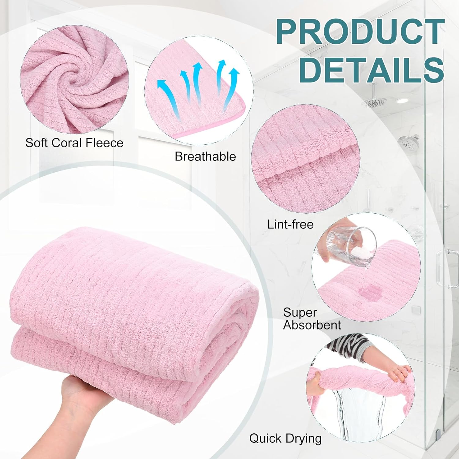 PRODUCT APPLICATIONSThese coral fleece stripe large bath sheets are perfect for wrapping up after a bath, shower, or swim; also great as a cozy beach towel or luxurious spa-style wrap for ultimate comfort at home.PRODUCT DETAILS & INCLUDES√ Material: Coral Fleece√ Color: Purple√ Overall Size: 180 cm/70 in x 90 cm/35 in (L x W)√ Package Includes: 4Pcs Large Stripe Bath TowelsPRODUCT ADVANTAGES1. Say goodbye to annoying lint and pilling! Made from coral fleece, these durable bath sheets are designed to retain plush softness and maintain excellent absorbency wash after wash, offering long-lasting performance.2. This coral fleece bath sheet is designed to be thicker and denser than standard towels, offering ample coverage and excellent heat retention. It effectively locks in your body warmth, making it perfect for cooler seasons or air-conditioned rooms, and turning your post-bath routine into a warm, comforting experience.ATTENTIONMachine washable for easy cleaning. For best results and to preserve the bright color and absorbency, wash separately before first use and tumble dry on low.