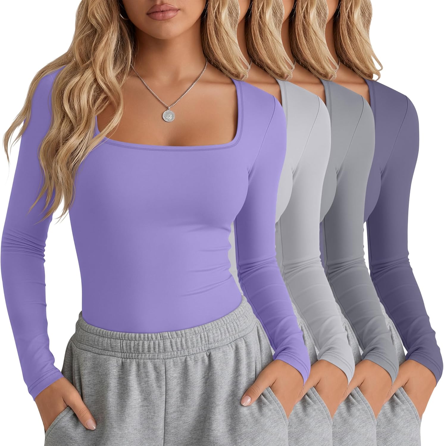 Features: Details about the cut and design: The long sleeve fitted undershirts are designed with square neck, suit for most body shape. Nice present for women: The basic yoga tops are suitable for women of different ages, making it a good present for sisters, wives or girlfriends. Specifications: Material: 80%Polyester, 20%Spandex Package includes: 4 x women's long sleeve square neck shirts Notes: Manual measurement, please allow slight errors on size. The color may exist a slight difference due to different screen display. Check the size chart before purchasing, it would help you find a more accurate size for yourself. Hand/machine wash in gentle with cold water, hang to dry or line dry, do not bleach, warm iron if needed, wash dark colors separately
