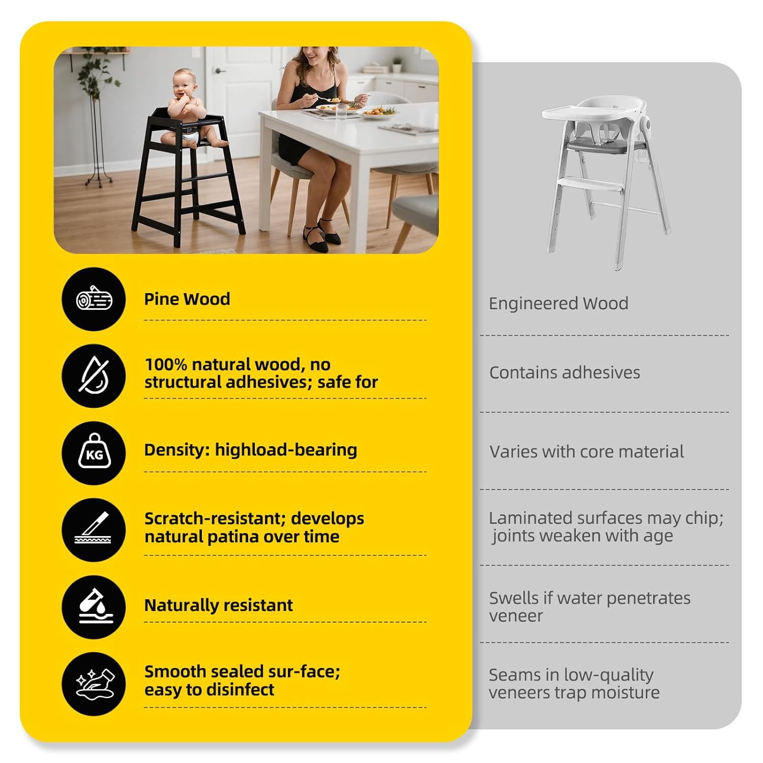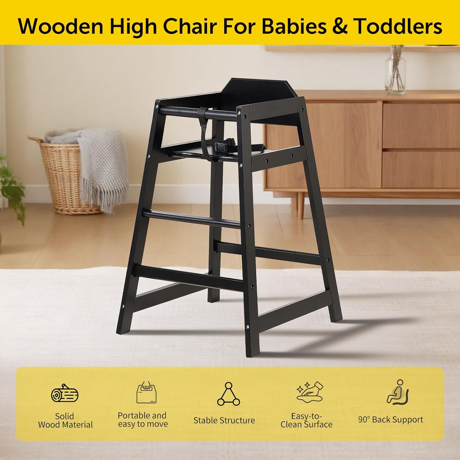 Wooden Baby High Chair - Stack-able Solid Wood Feeding Seat, with Commercial Grade Solid Wood for Dining Table & Kitchen - Compact & Portable Design for Restaurant & Home Use