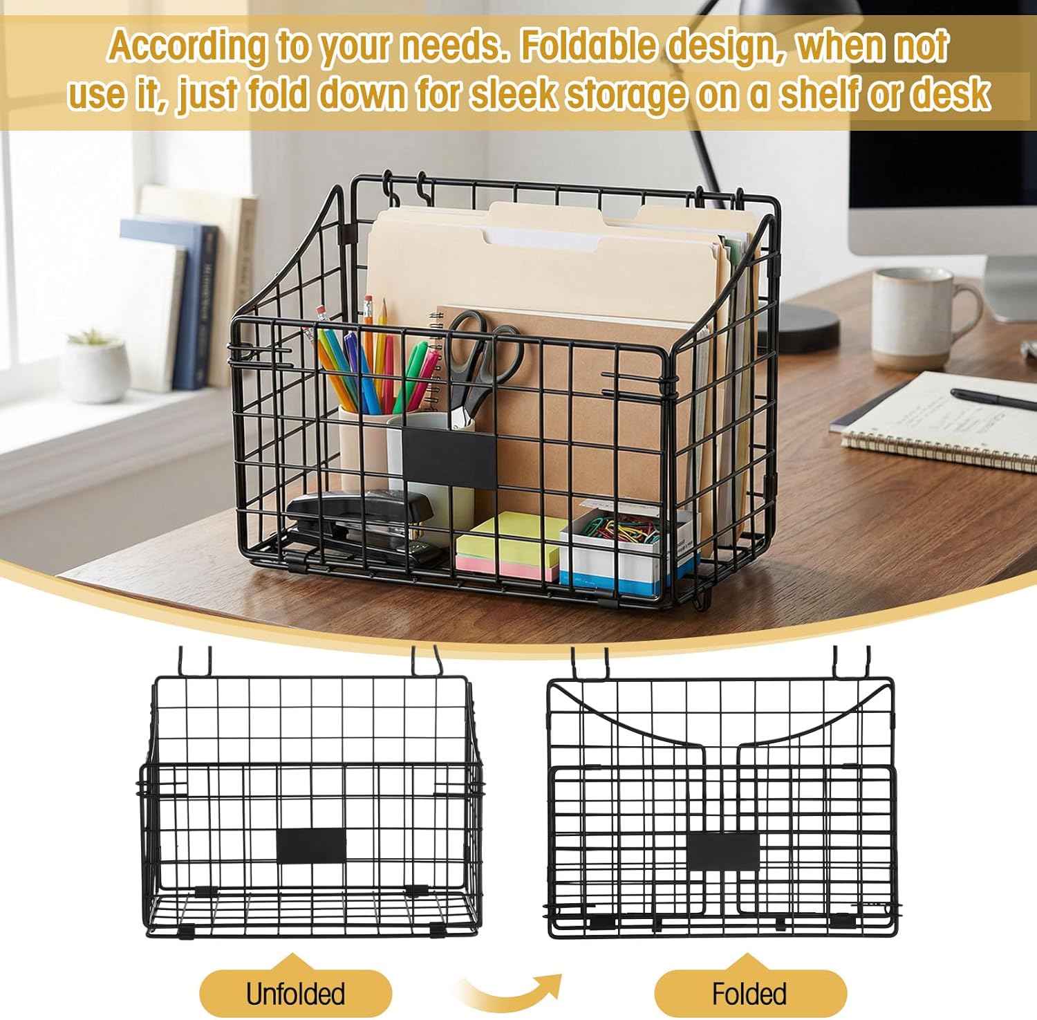 Features: The stylish black color of these pegboard baskets and bins brings a modern touch to your laundry room, garage, or kitchen, seamlessly integrating with any decor style. The foldable design of this peg board organizer accessories set allows for easy installation and compact storage. Fold them up when not in use, saving space on your desk or countertop. Specifications: Material: wire mesh Color: black Size: about 10.6 x 7.5 x 5.1 inches/ 27 x 19 x 13 cm Package includes: 4 x Pegboard baskets set Notes: Manual measurement, please allow slight errors on size. The color may exist a slight difference due to different screen displays. When cleaning wipe with a damp cloth and dry