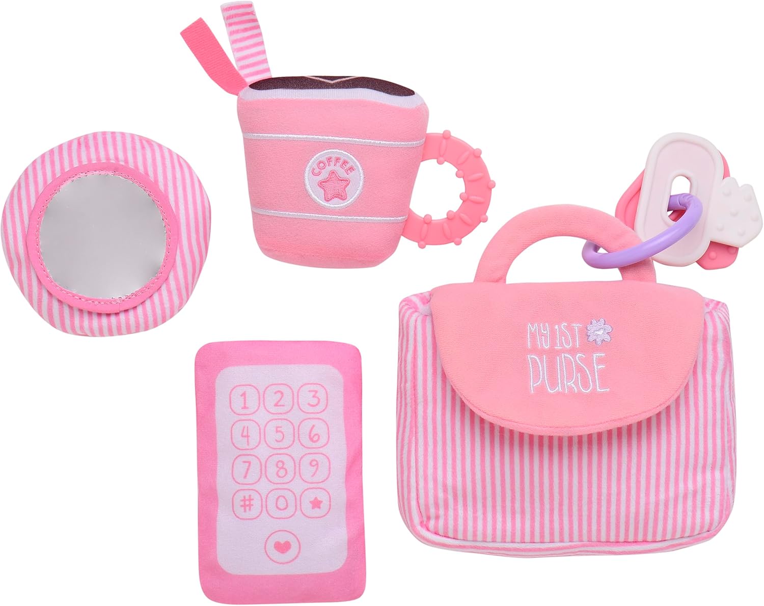 4 Piece My First Golf Gift Set includes soft plush toys made for babies and kids. Inside the plush embroidered golf bag are a plush golf club (putter) with touchable ribbons, a plush golf ball with rattle, a hole in one field and embroidered flag with crinkle . Babies and keys will be engaged and entertained by this multi-piece set. The set helps teach fine motor skills and help with sensory development.