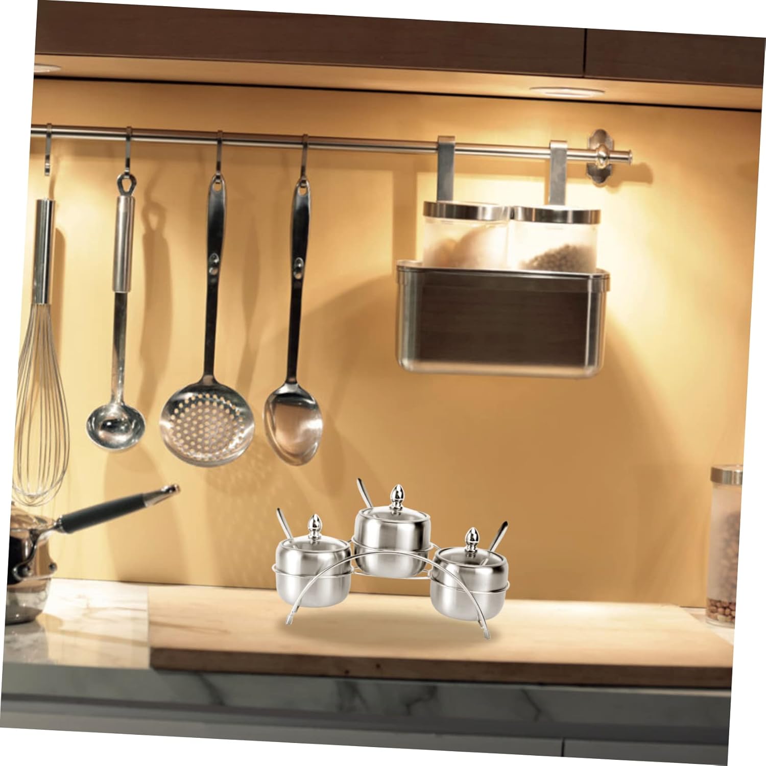 4-piece Stainless Steel Spice Jar Set Pull-out under Cabinet Spice Rack for Kitchen Condiment Holder Lids Space-saving Arch Design Perfect for Pantry
