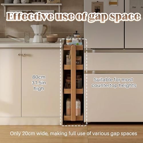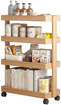 Transform your living space with our versatile wooden mobile cart, designed for a variety of uses including reading, watching TV, and entertaining guests. Made from durable solid wood, this cart ensures long-lasting performance while adding a touch of elegance to your home decor. Equipped with four universal wheels, this cart glides effortlessly from room to room, allowing you to reposition it as needed for ultimate convenience. Its slim design fits perfectly into narrow spaces, making it an ideal solution for maximizing your storage capacity without compromising style. With four layers of organized storage, this mobile cart is perfect for keeping your items neatly arranged, whether you need it in the living room, kitchen, or home office. This adaptable piece not only enhances your home’s functionality but also complements various decor styles. Specifications: - Material: Solid wood - Overall size options: - 40*20*80cm / 15.74*7.87*31.49in - 60*20*80cm / 23.62*7.87*31.49in Package includes: - 1 x Wooden mobile cart Please note: - Color may vary slightly due to different monitor settings and lighting. - A measurement error of 1-3 cm may occur due to manual measurement. Elevate your home's organization and style with our mobile cart today!