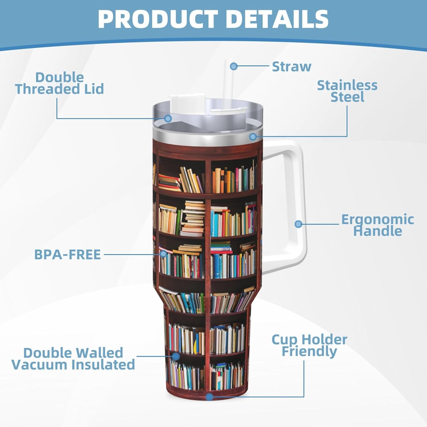 This books Print Ice Bully Cup features a double layer stainless steel design that can be used for a long time without rusting. The lid has good sealing to prevent water from overflowing, and it is easy to unscrew for filling and cleaning. It can keep water, coffee, or drinks warm or cool for hours and is suitable for travel, camping, and driving.