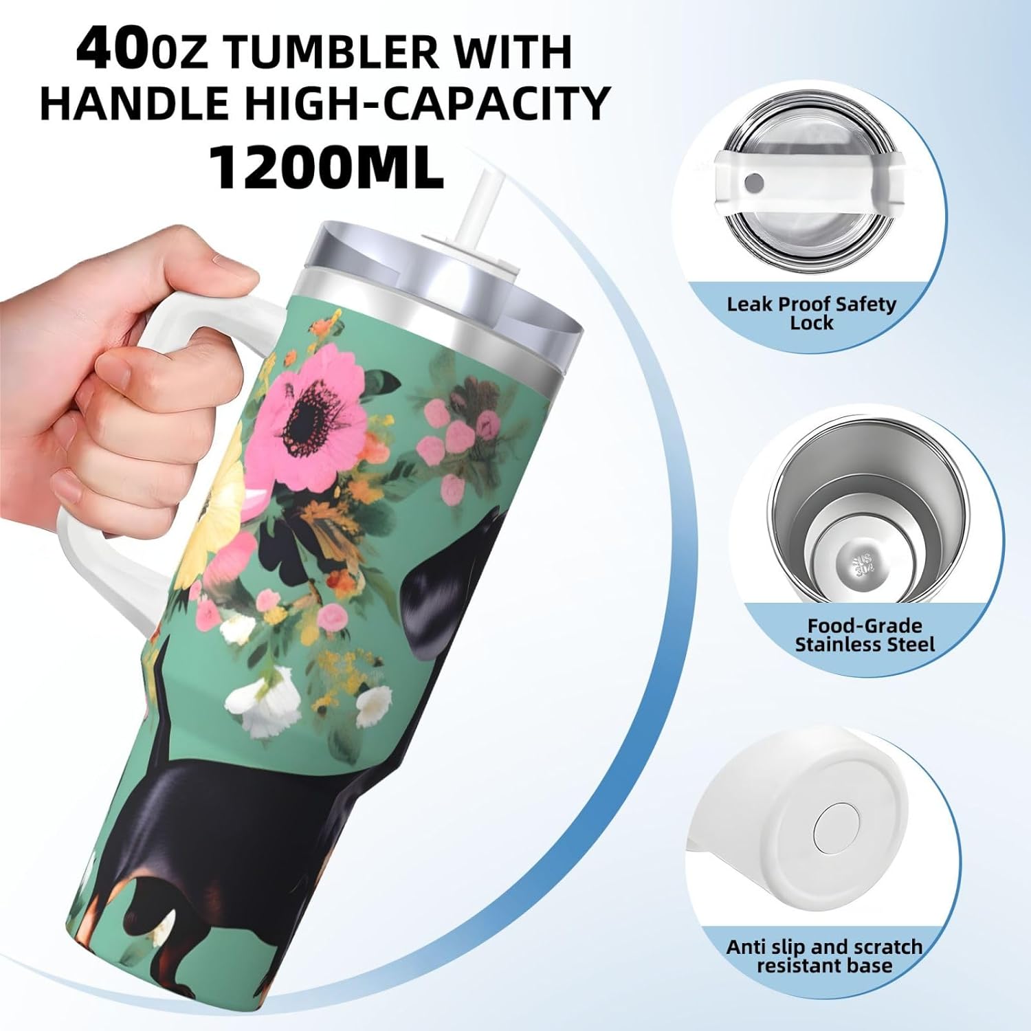 This Dachshund Florals Print Ice Bully Cup features a double layer stainless steel design that can be used for a long time without rusting. The lid has good sealing to prevent water from overflowing, and it is easy to unscrew for filling and cleaning. It can keep water, coffee, or drinks warm or cool for hours and is suitable for travel, camping, and driving.