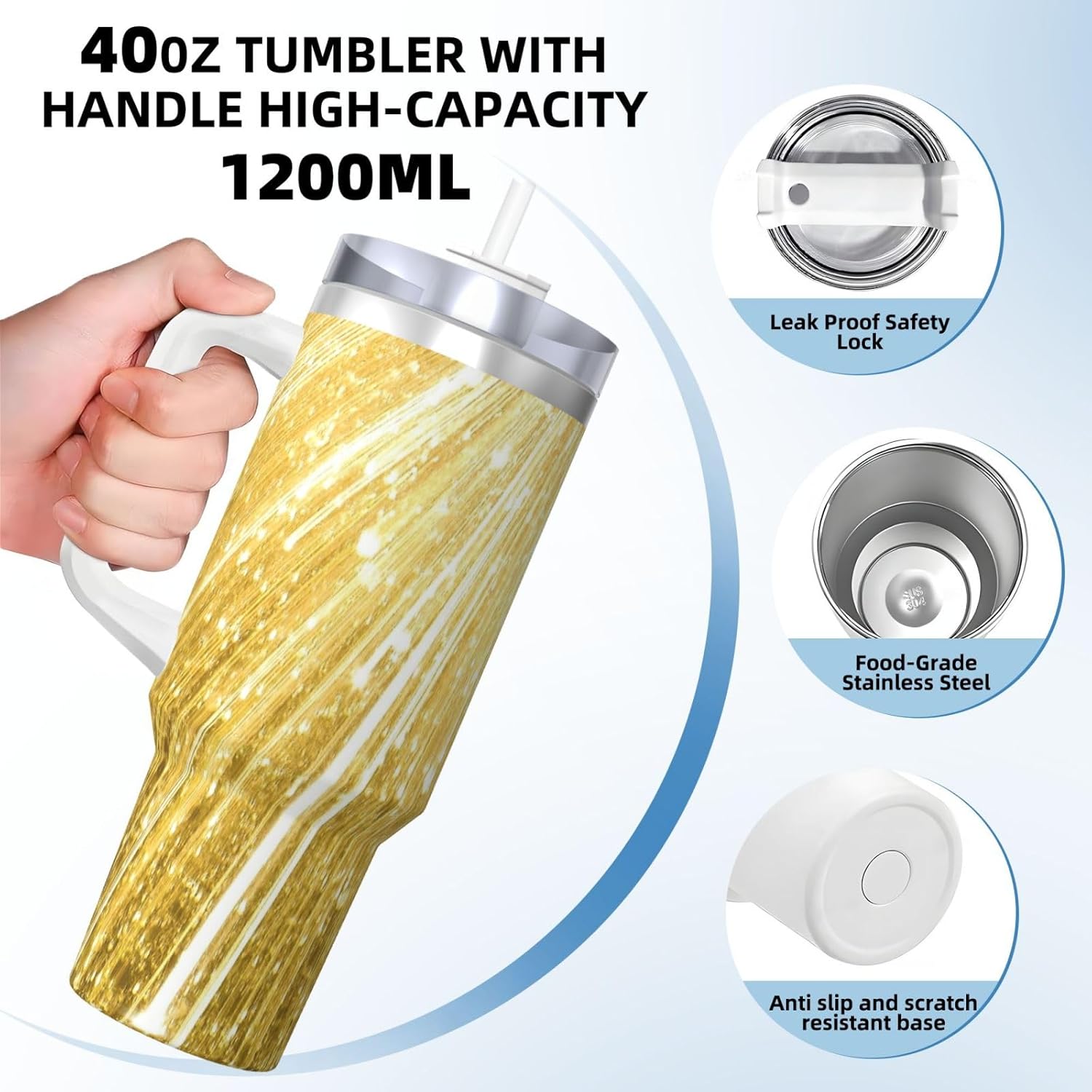 This Gold Bling Print Ice Bully Cup features a double layer stainless steel design that can be used for a long time without rusting. The lid has good sealing to prevent water from overflowing, and it is easy to unscrew for filling and cleaning. It can keep water, coffee, or drinks warm or cool for hours and is suitable for travel, camping, and driving.