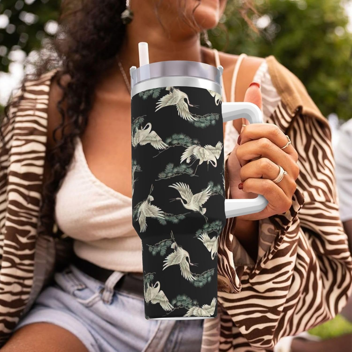 This Japanese Crane & Pine Print Ice Bully Cup features a double layer stainless steel design that can be used for a long time without rusting. The lid has good sealing to prevent water from overflowing, and it is easy to unscrew for filling and cleaning. It can keep water, coffee, or drinks warm or cool for hours and is suitable for travel, camping, and driving.