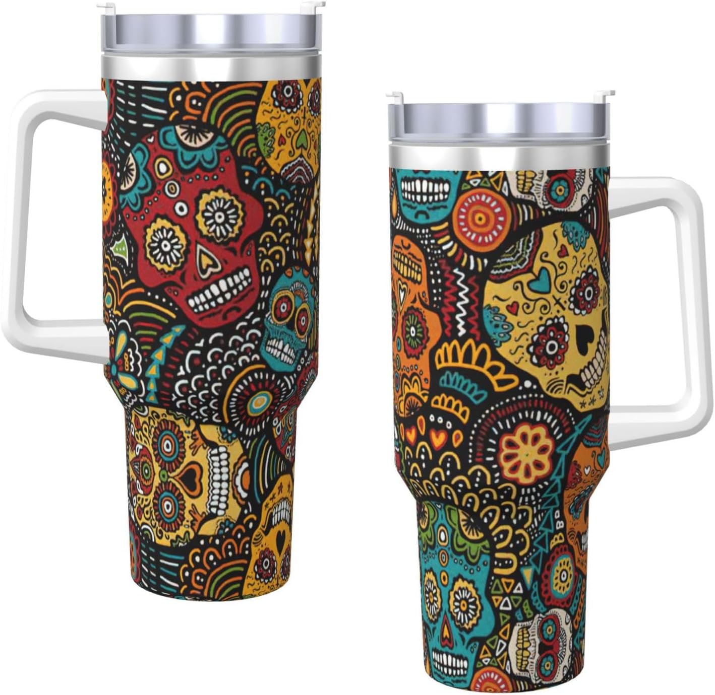This Sugar and Skulls Style Print Ice Bully Cup features a double layer stainless steel design that can be used for a long time without rusting. The lid has good sealing to prevent water from overflowing, and it is easy to unscrew for filling and cleaning. It can keep water, coffee, or drinks warm or cool for hours and is suitable for travel, camping, and driving.